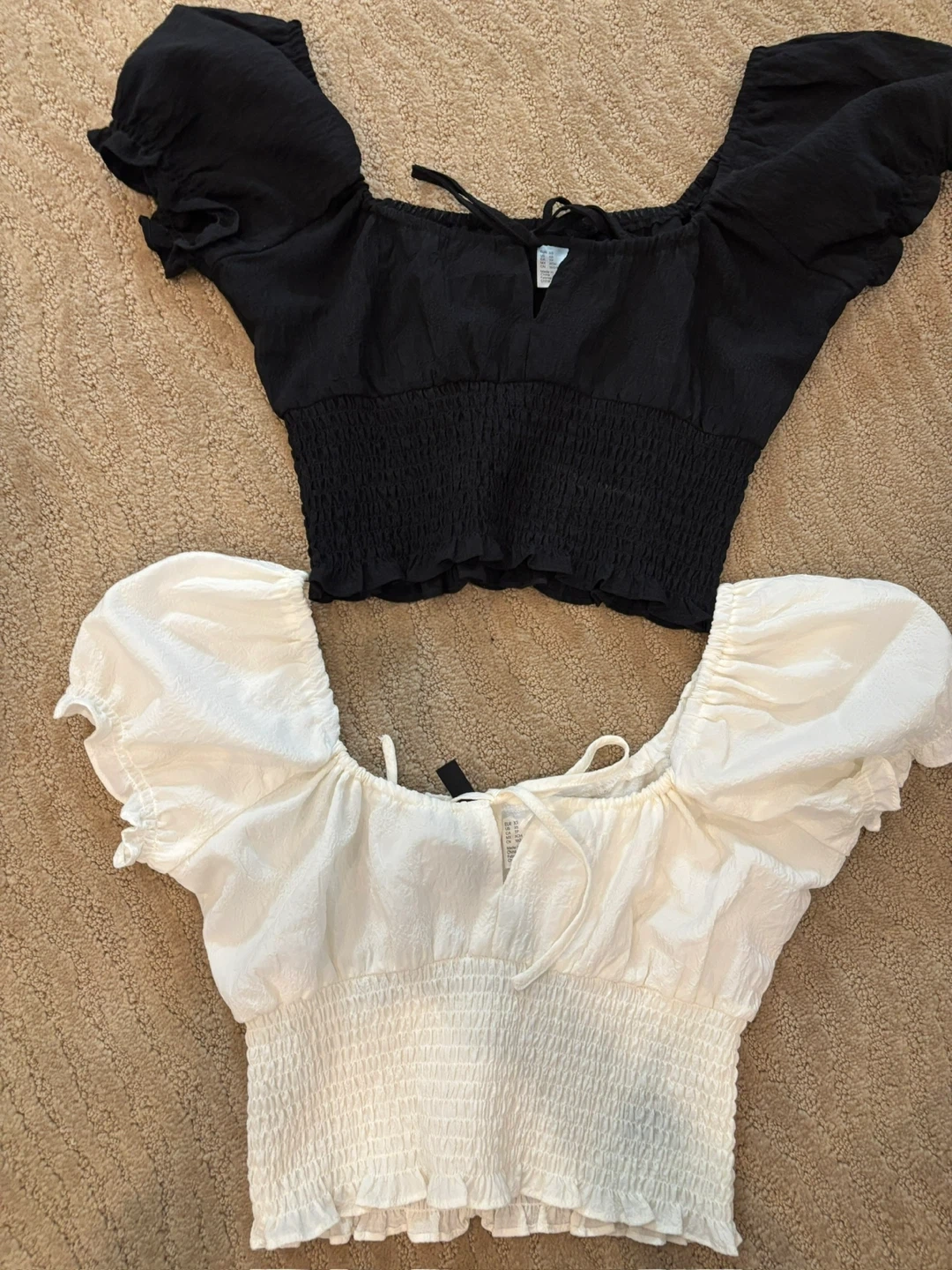 - Includes: Two crop tops (one black, one white)