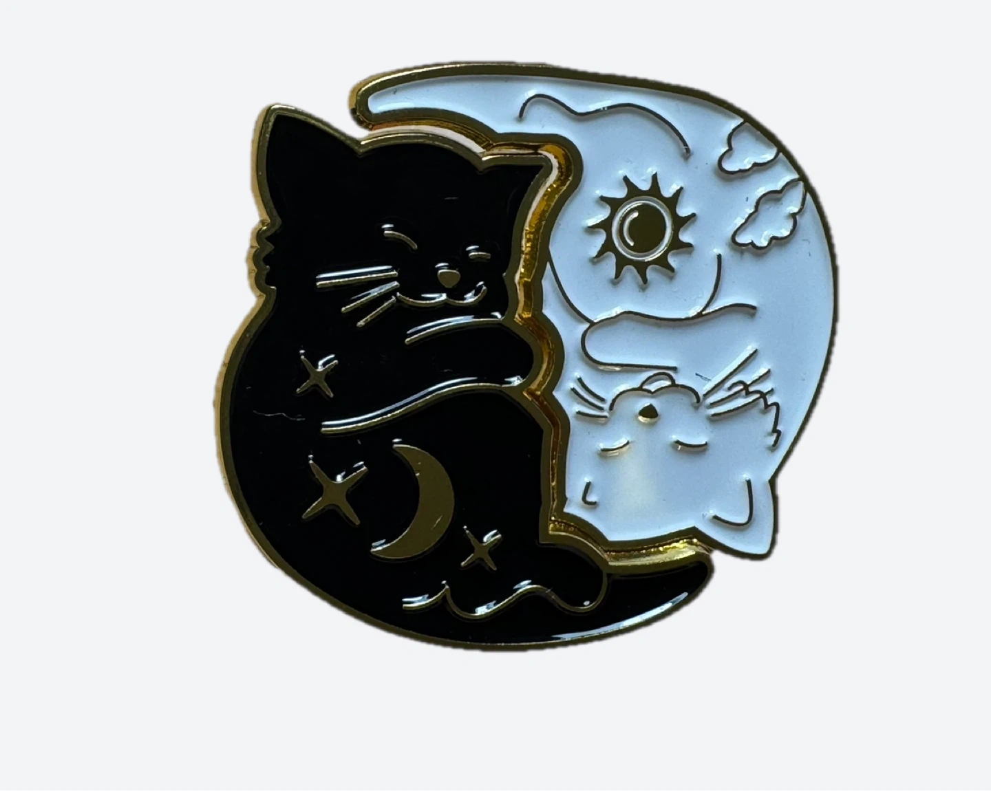 Cute yin yang cat enamel pin set.