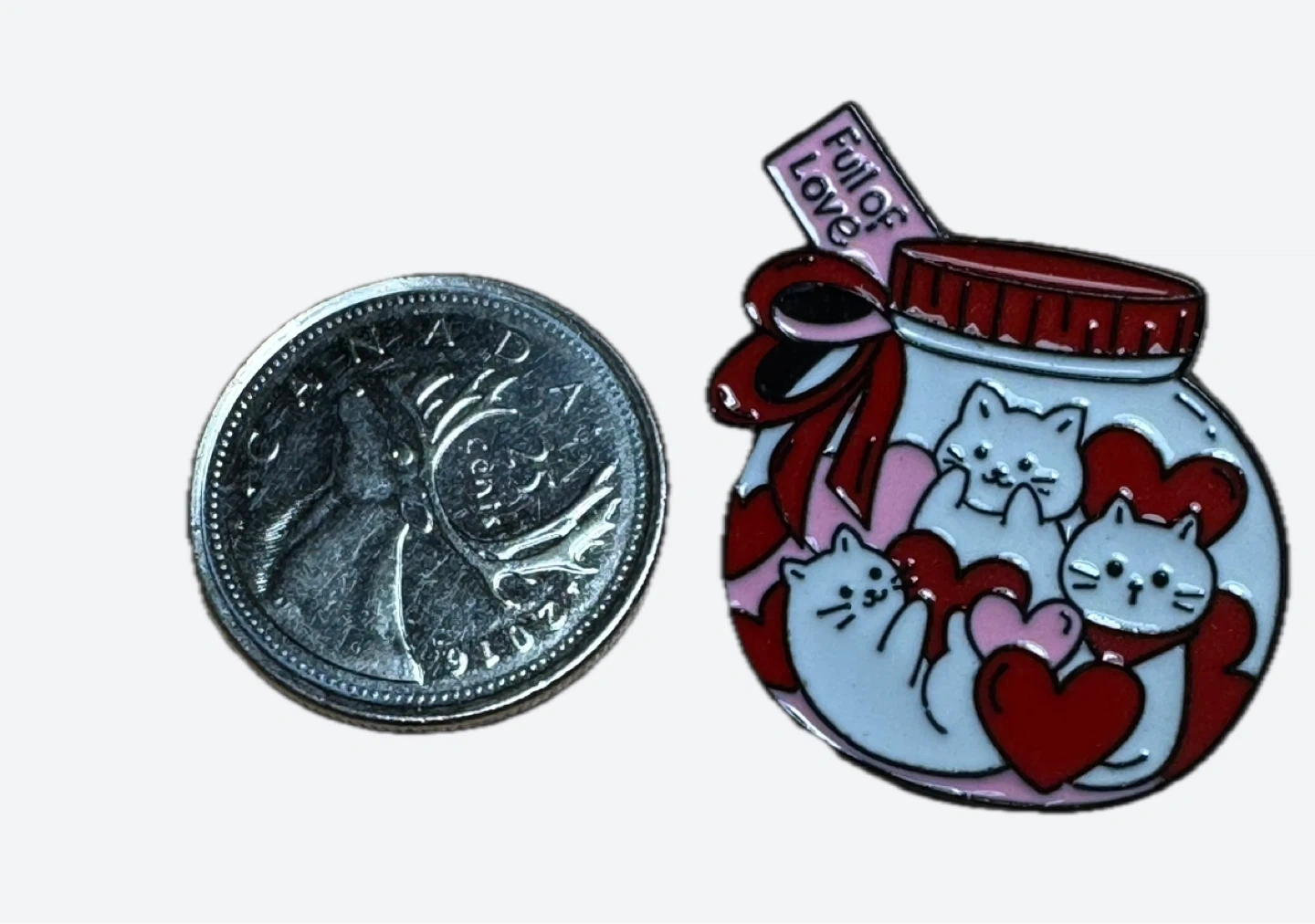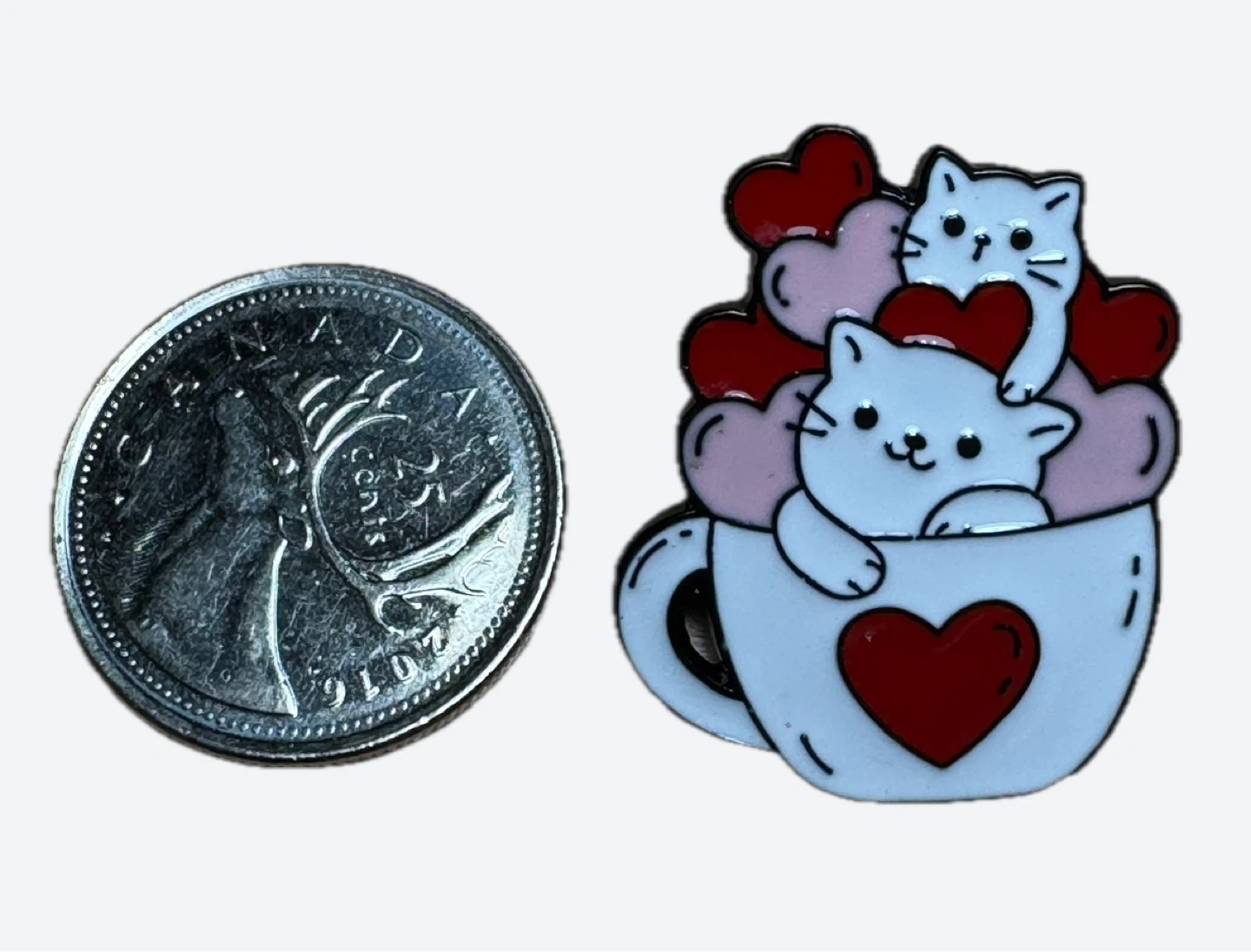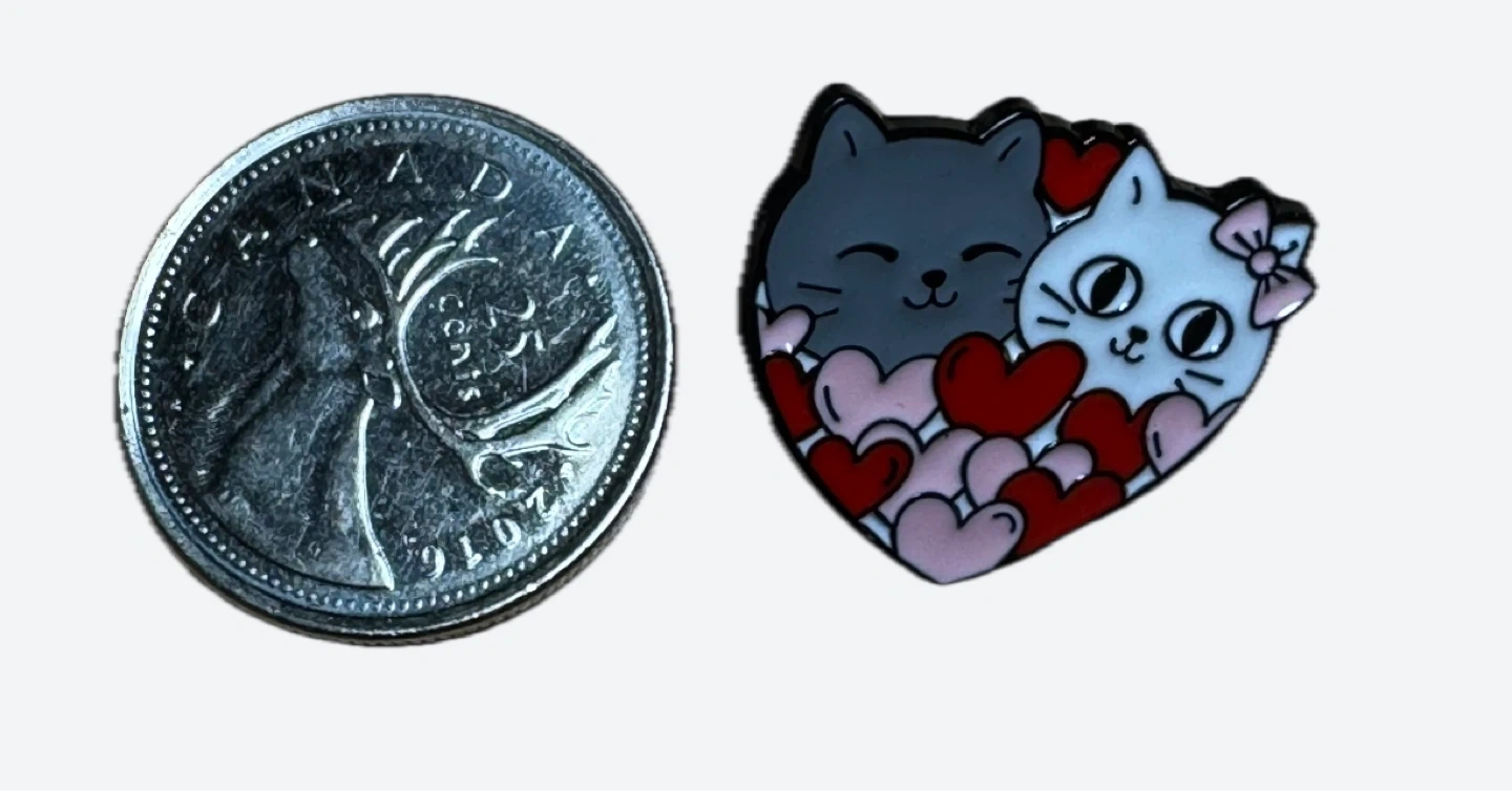 Four adorable enamel pins featuring cute cats with hearts.