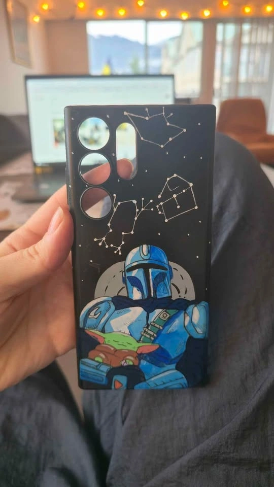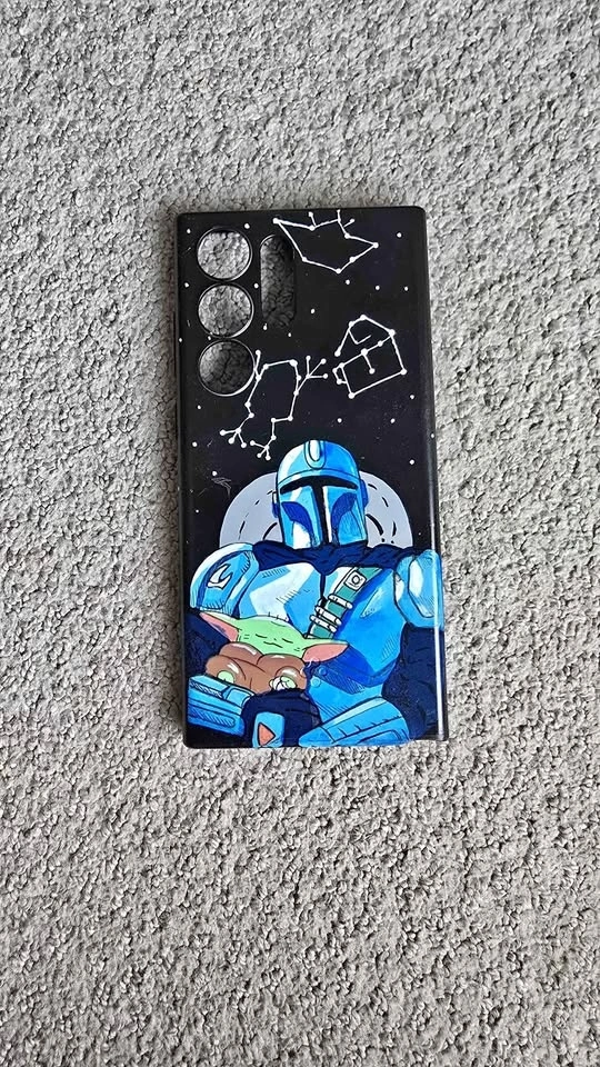 Never worn custom painted case for Samsung S23 Ultra. Bought it but ended up getting an S24 Ultra, so it doesn't fit. Features a Mandalorian design painted with acrylic markers. Pick up in Central Lonsdale, North Vancouver.