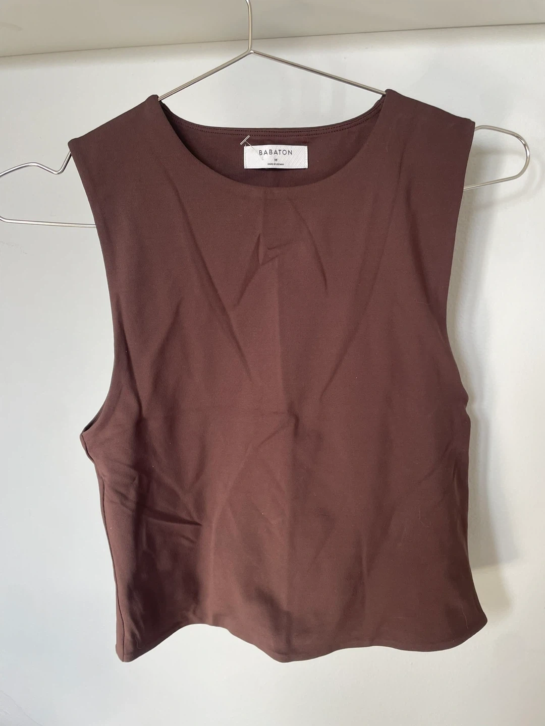 Sabaton brown sleeveless crop top. Size medium. Made from a stretchy material. A great basic for layering or wearing on its own!