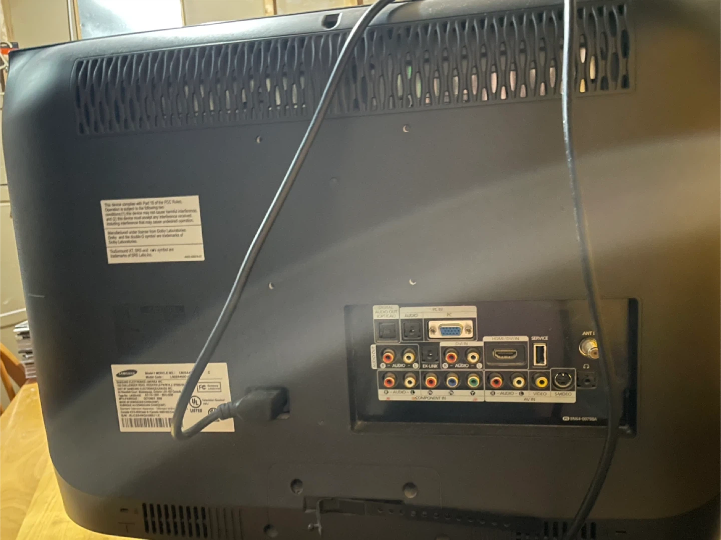 This Samsung 22 inch flat screen television is in good working condition. It features multiple input options including HDMI, component, AV, and S-Video. Its compact size makes it suitable for a bedroom or office space.