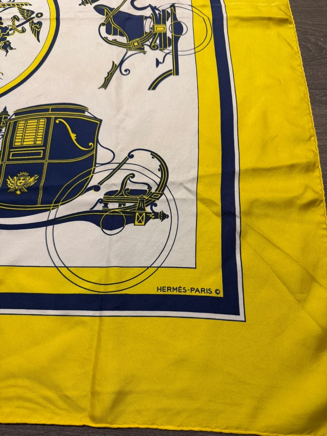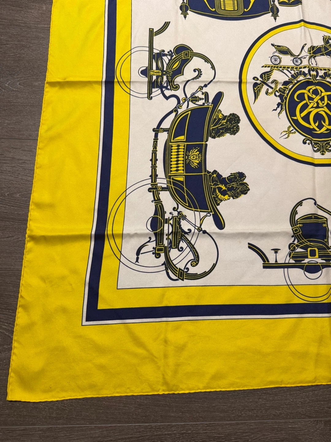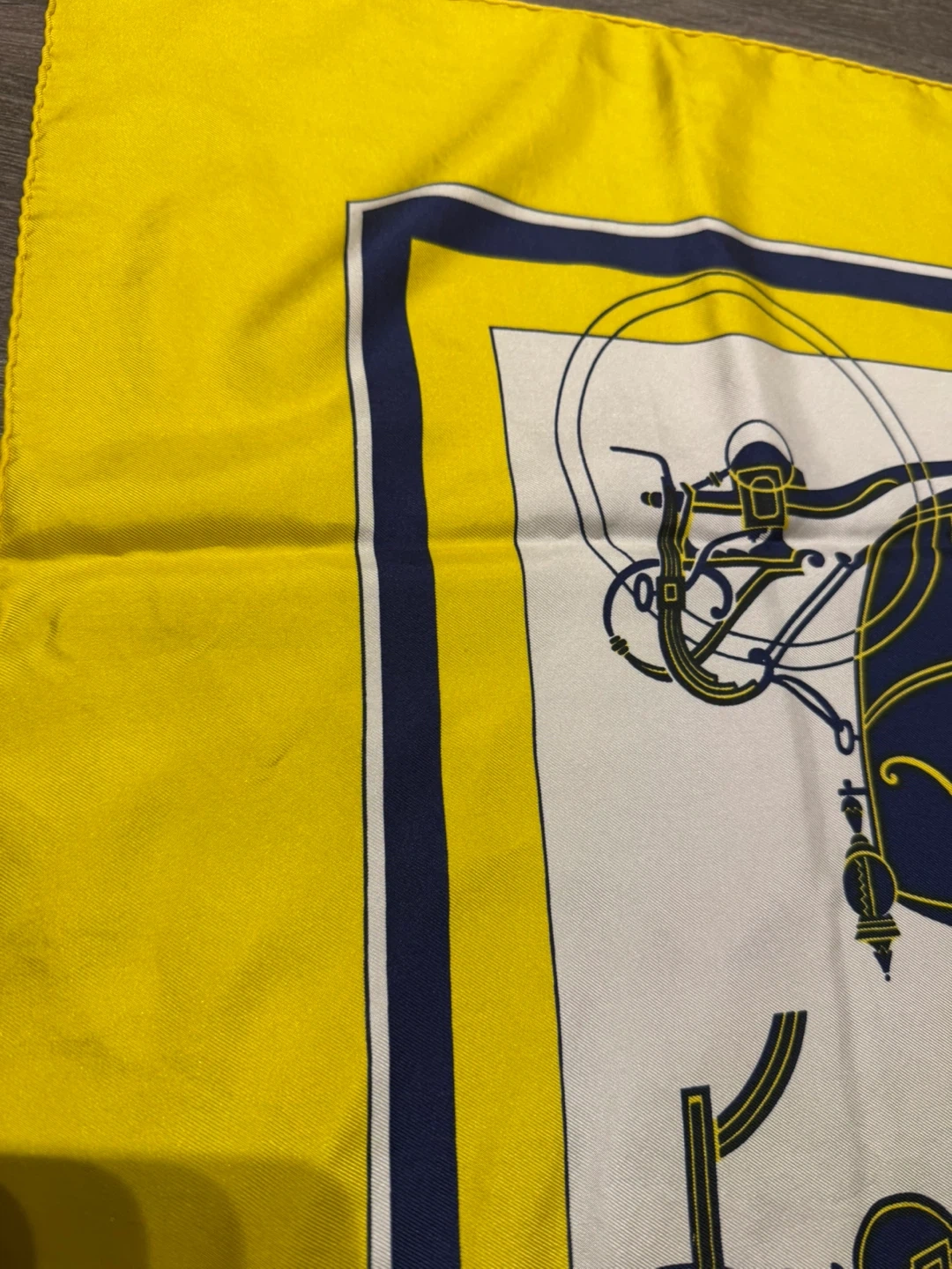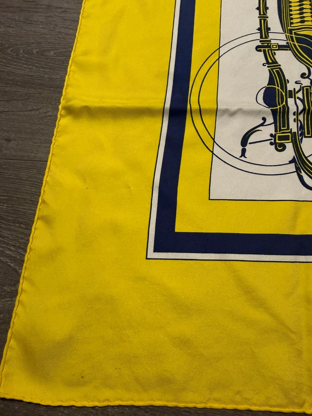100% Authentic Hermes Scarf Silk Ex Libris Yellow Vintage Rear