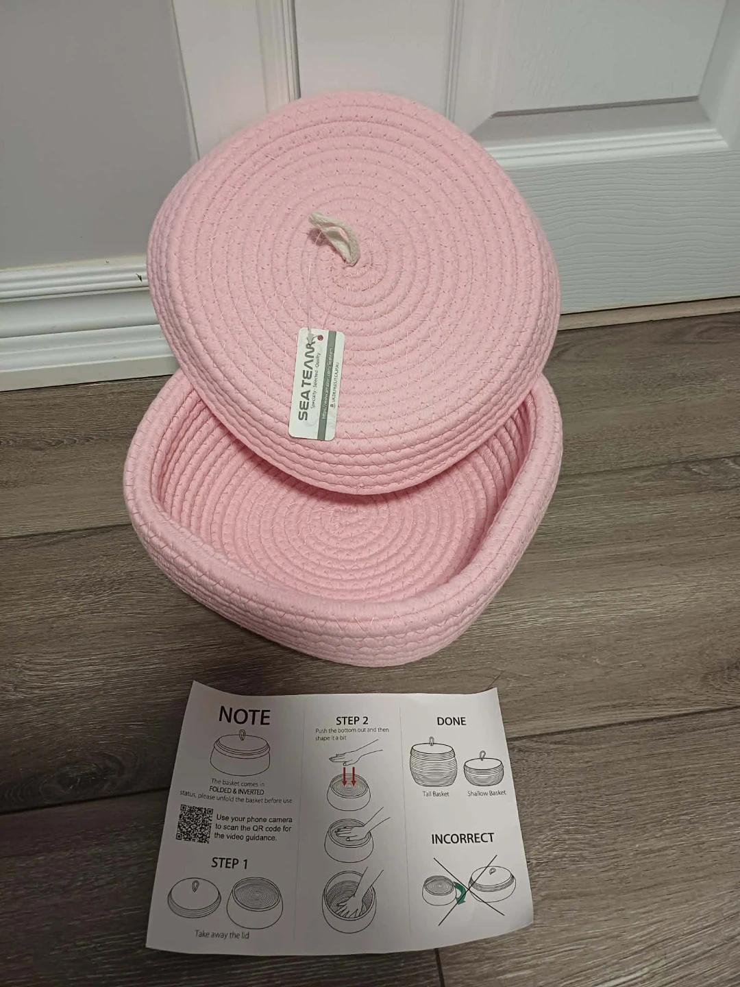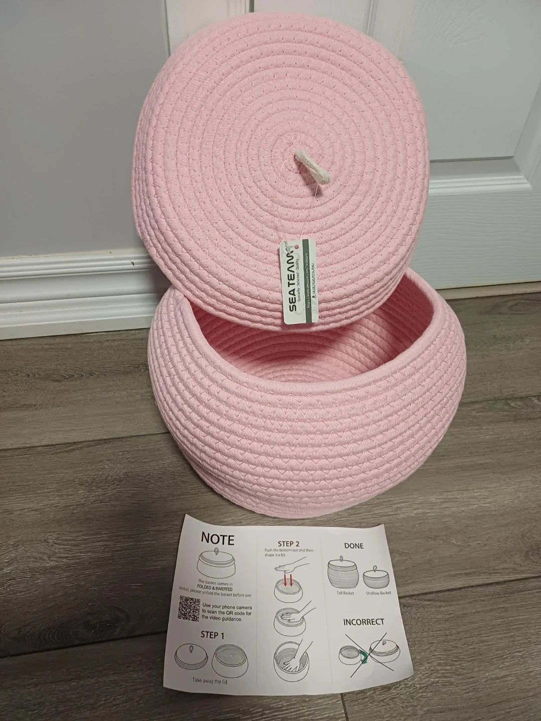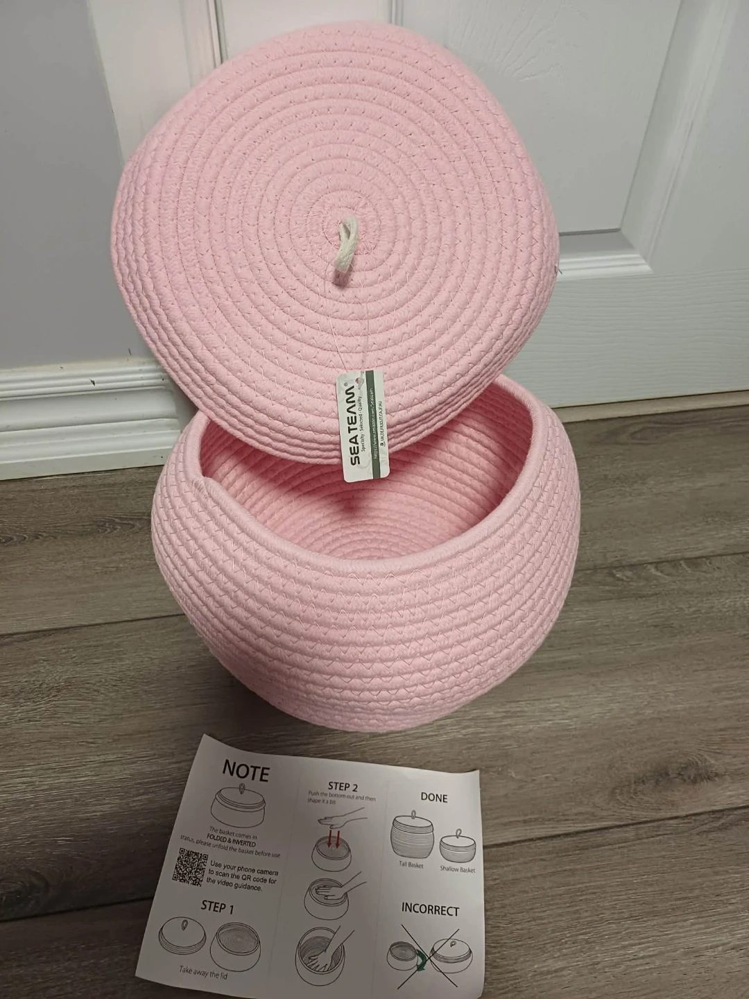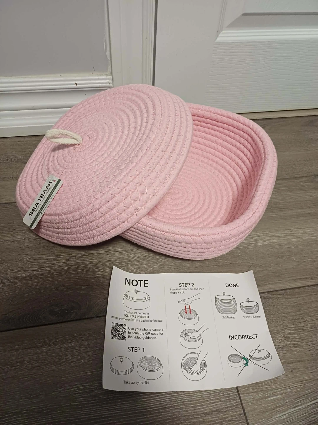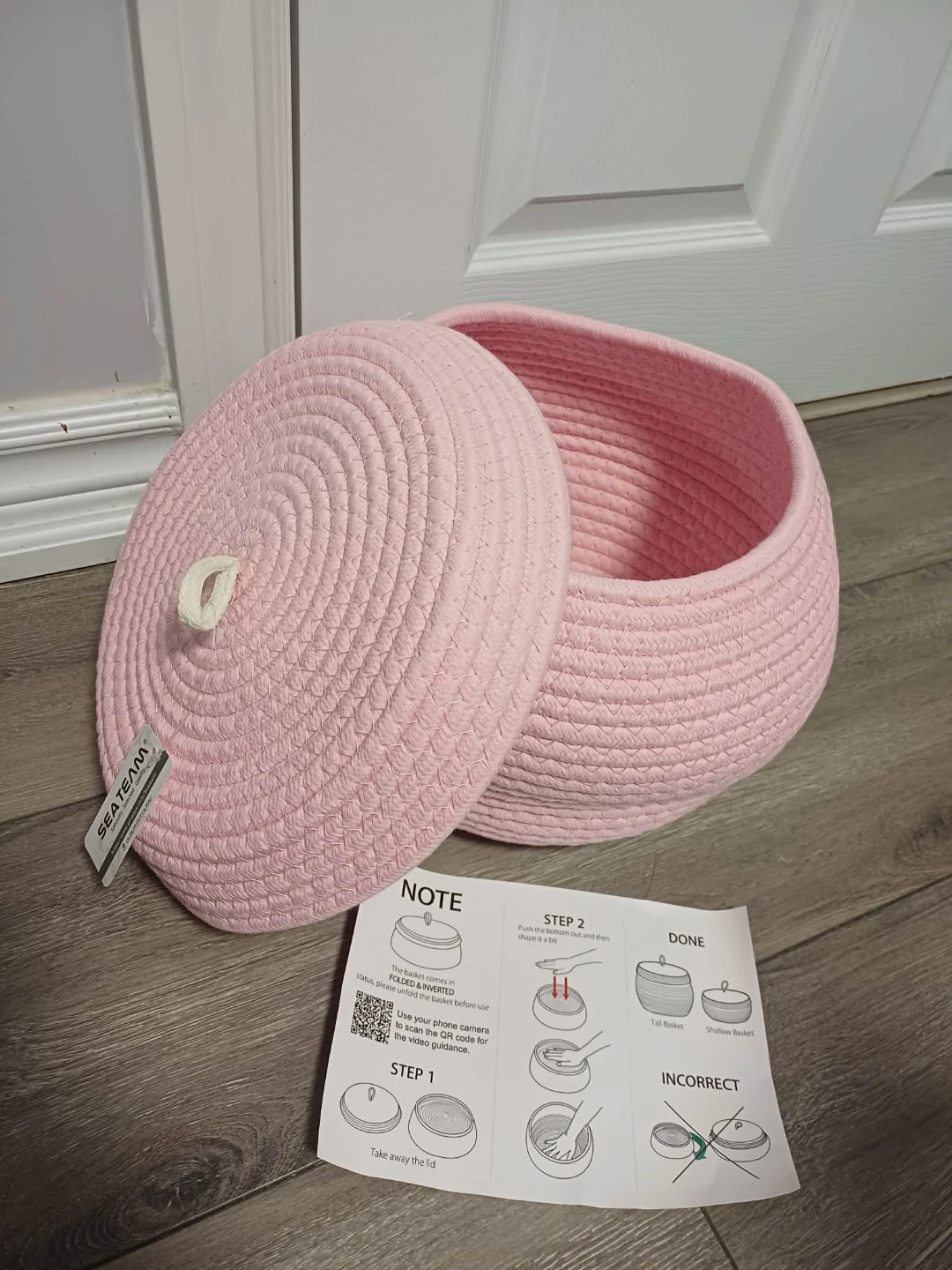 SEATEAM Rope Storage Basket with Lid - Pink
