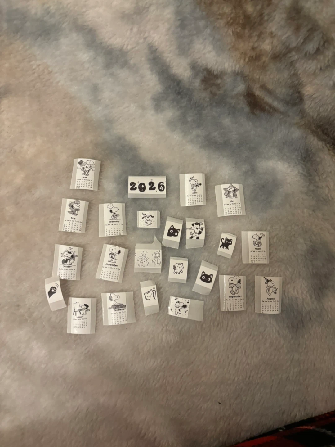 Set of small calendars featuring Snoopy and friends. Includes all months for 2026. Great for crafts or journaling! 0.50$ each! Also can do your design:)