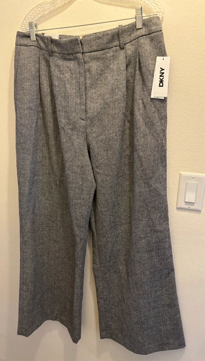 NEW DKNY Women's Gray Herringbone Wide Leg Pants Size 14