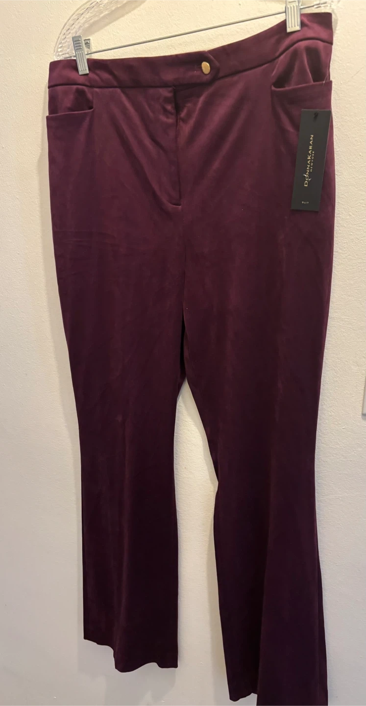 NEW Donna Karan New York Velvet Pants Size 12 Burgundy