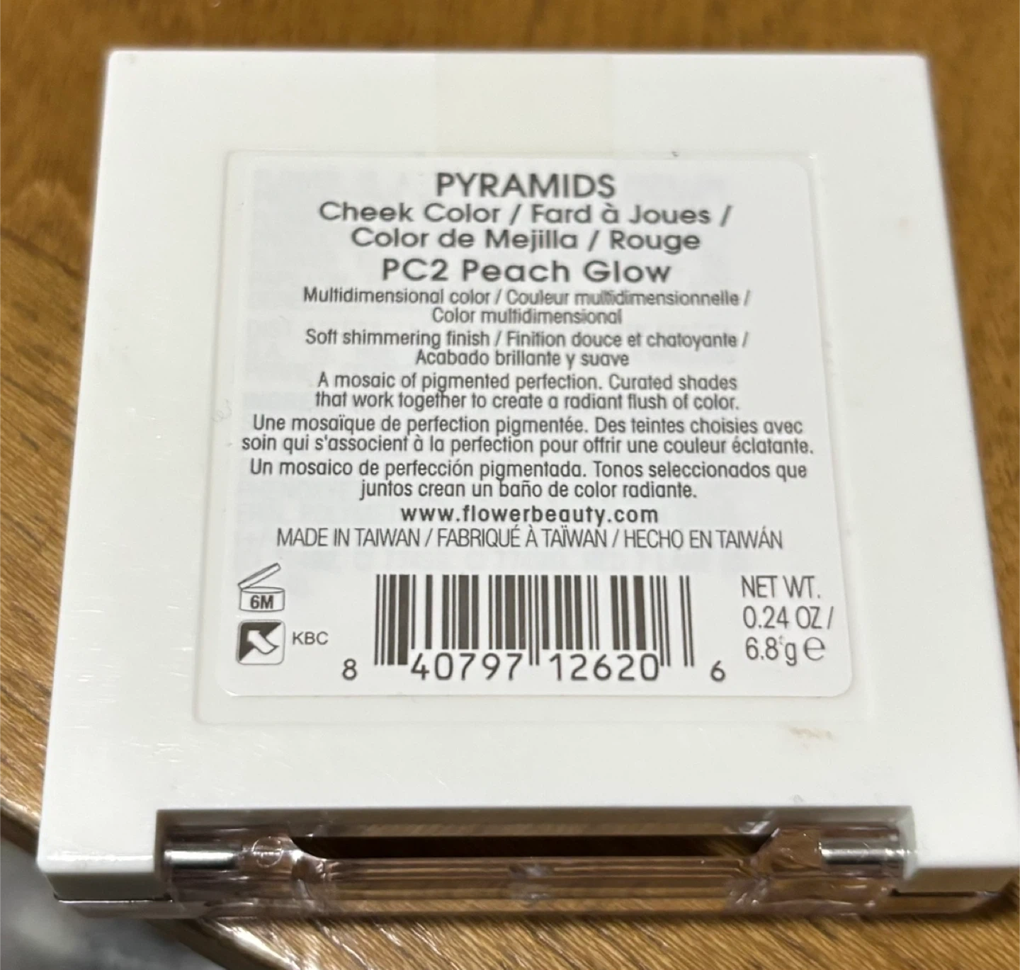 This is the Flower Beauty Pyramids Cheek Color in shade PC2 Peach Glow. It's a multidimensional color with a soft shimmering finish. Featuring a mosaic of pigmented shades.