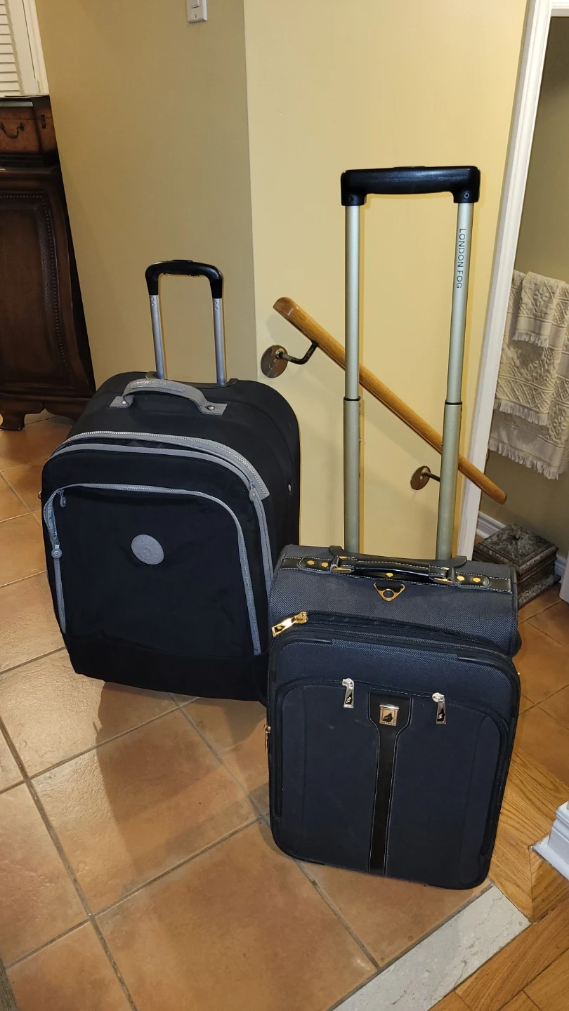 Two black rolling suitcases, very solid like new -$20 each. Both have telescopic handles and wheels. Great for travel!