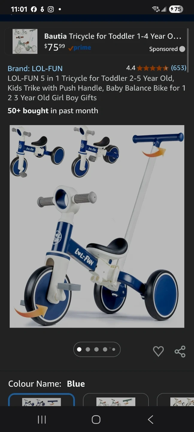 This LOL-FUN 5-in-1 tricycle transforms with your child's growth. It functions as a baby walker, pedal tricycle, balance bike, and push mode. The handle height adjusts up to 37 inches, and it features a removable pedal and flip rear wheel.