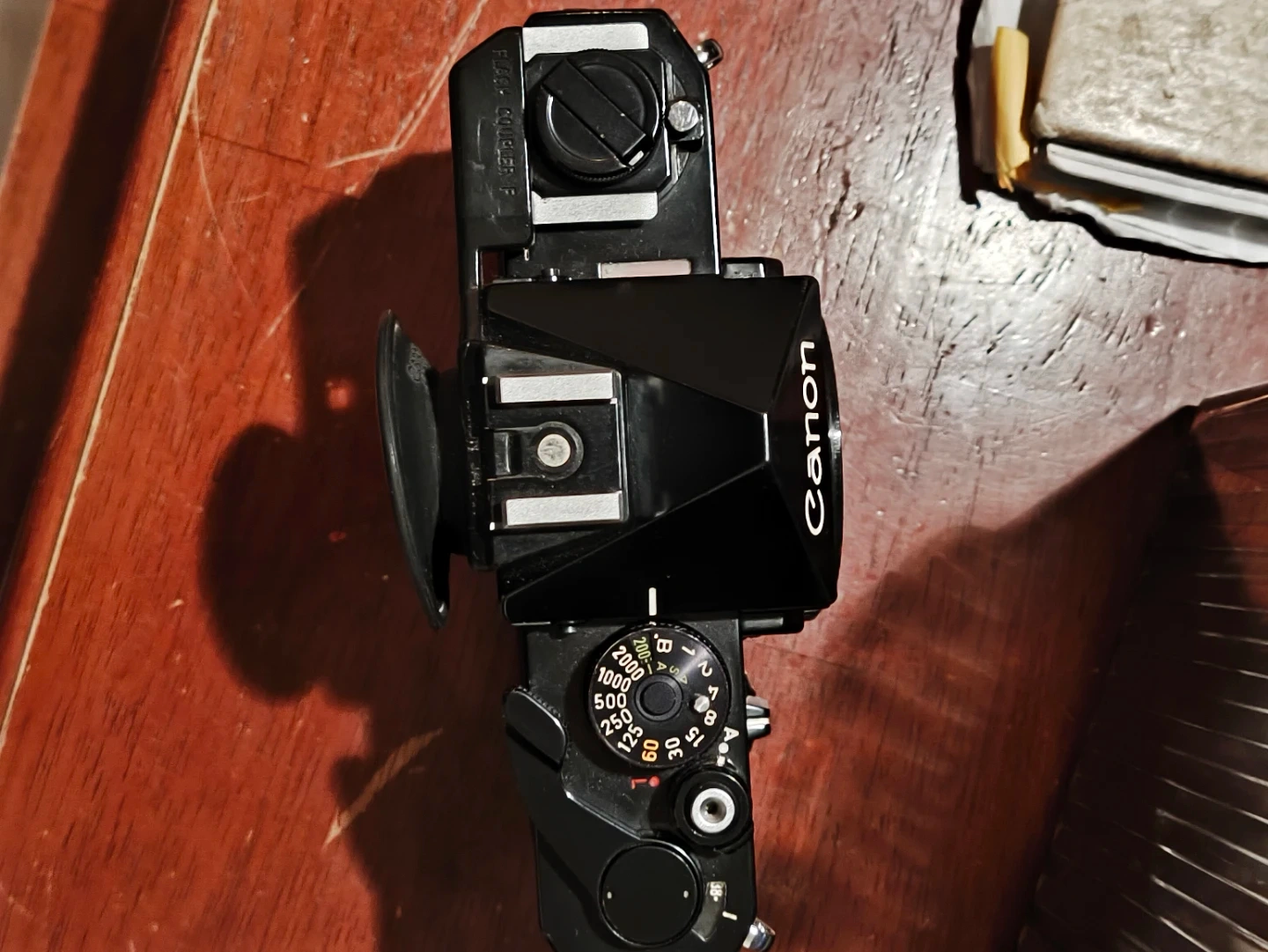 This is a black Canon F-1 camera. It's a 35mm SLR film camera. It's good for photographers looking to get into film photography!