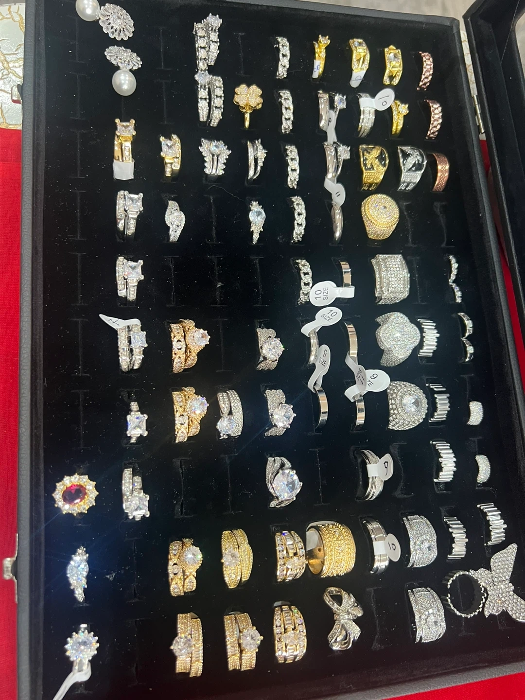 Variety of dazzling fashion rings available. Styles include solitaire, band, and statement pieces. Various sizes are included in this collection. These rings are perfect for adding a touch of sparkle to any outfit!