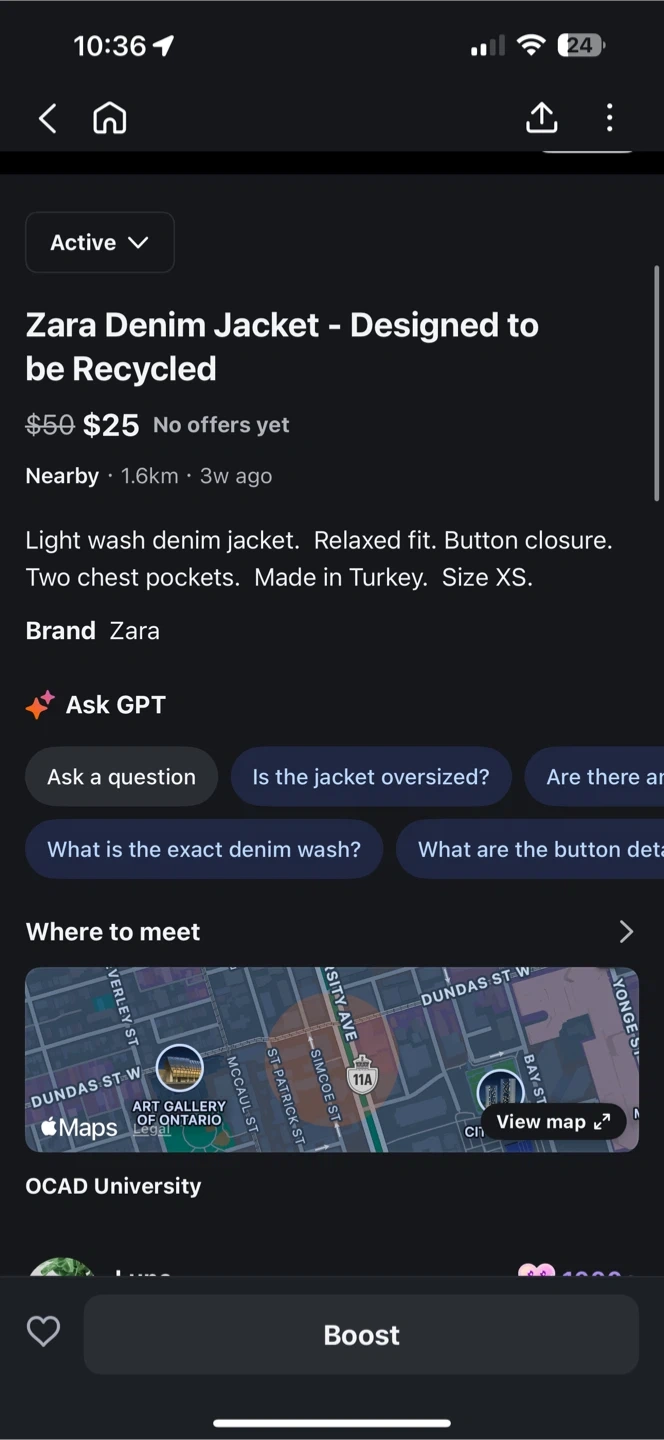 Zara Denim Jacket - Size XS