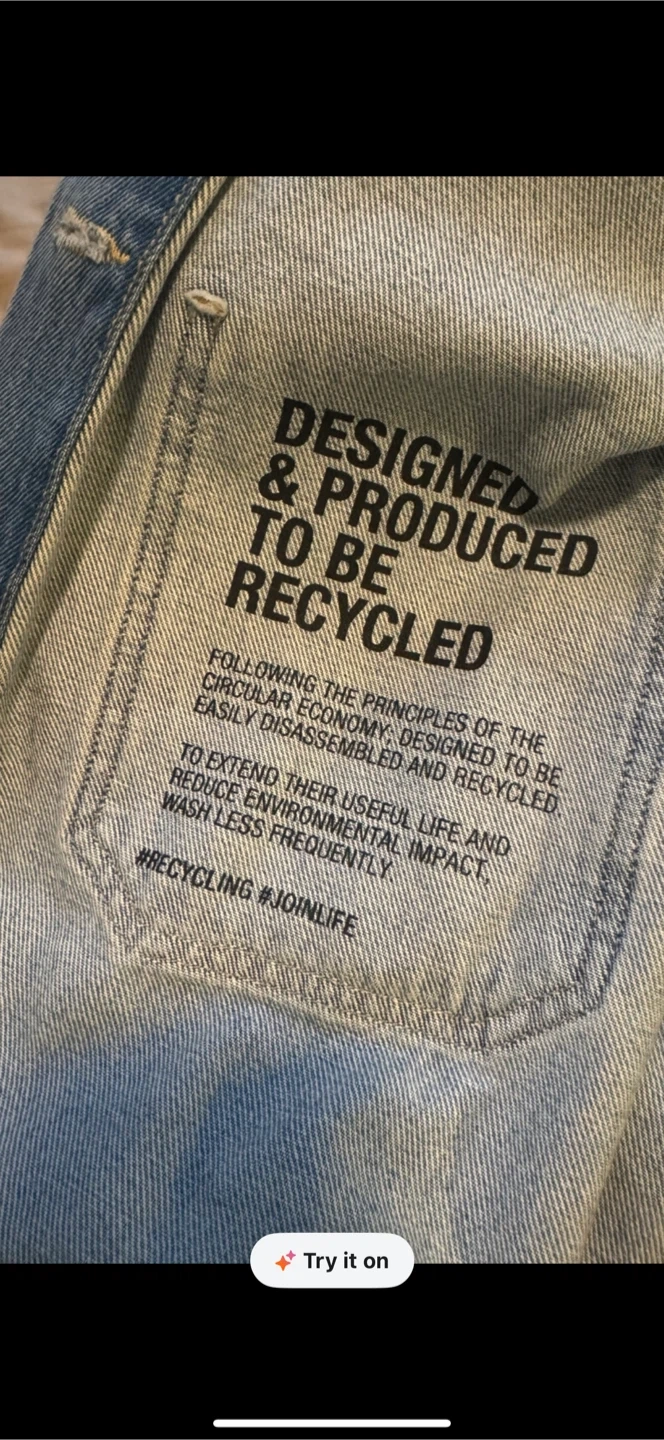 Light wash denim jacket. Relaxed fit with button closure. It's designed to be recycled. Made in Turkey.