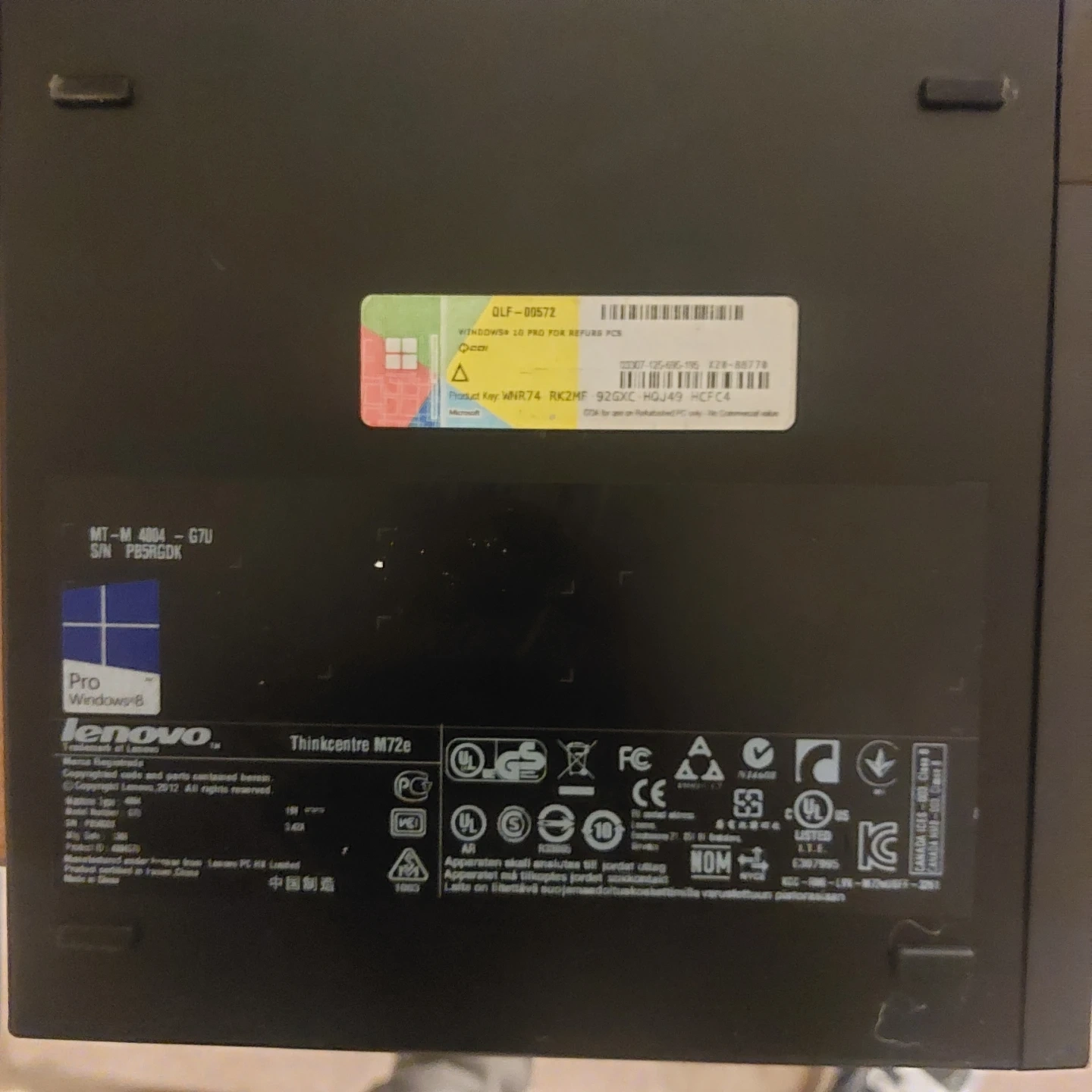 Lenovo ThinkCentre M72e desktop computer. Small form factor PC with multiple USB ports and display outputs. Includes a Windows 8 Pro COA sticker on the bottom. Core i5 cpu, 12GB ram, 250gb SSD, Windows 10 pro x64, Built in WiFi and Bluetooth. Asking $100 OBO
