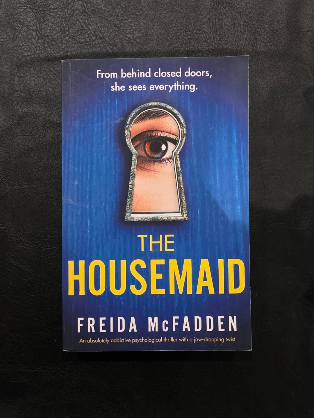 This is "The Housemaid" by Freida McFadden. It's a psychological thriller that promises a jaw-dropping twist. Perfect for readers who enjoy suspenseful reads!