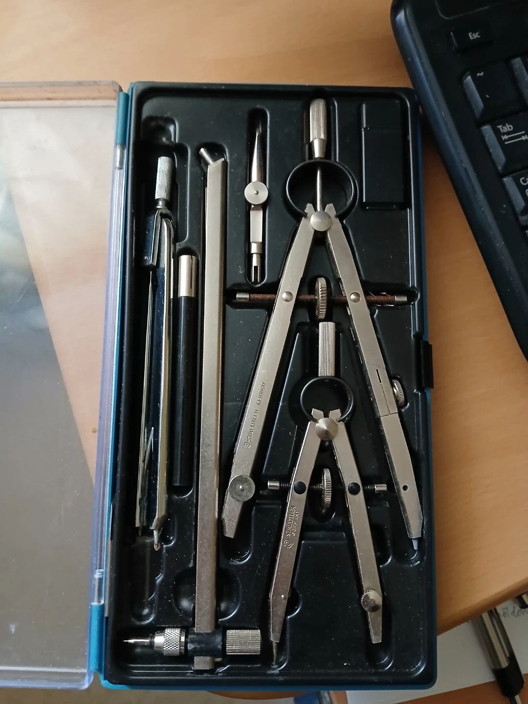 This is a STAEDTLER MARS-MASTERBOW drawing compass set. It includes a compass, divider, and pencil attachment. All pieces come neatly organized in a carrying case. One piece is missing.