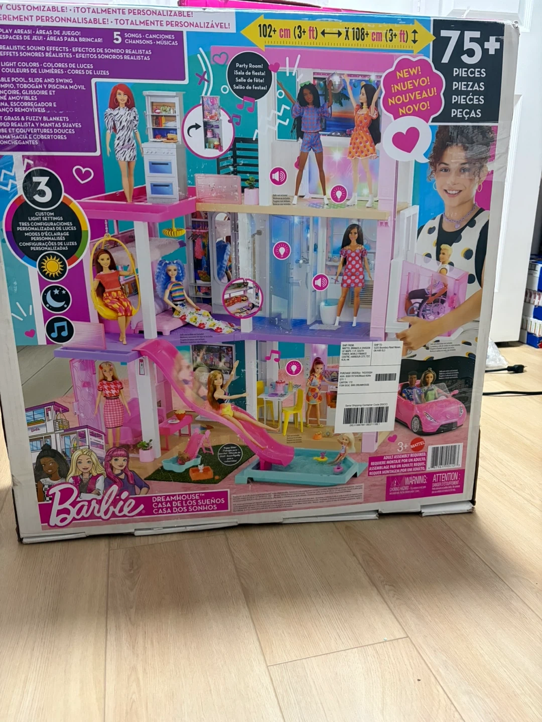 This is the Barbie Dreamhouse with 75+ pieces. It's a large, multi-level dollhouse with a pool, slide, and working elevator. It also includes light and sound features for interactive play.
