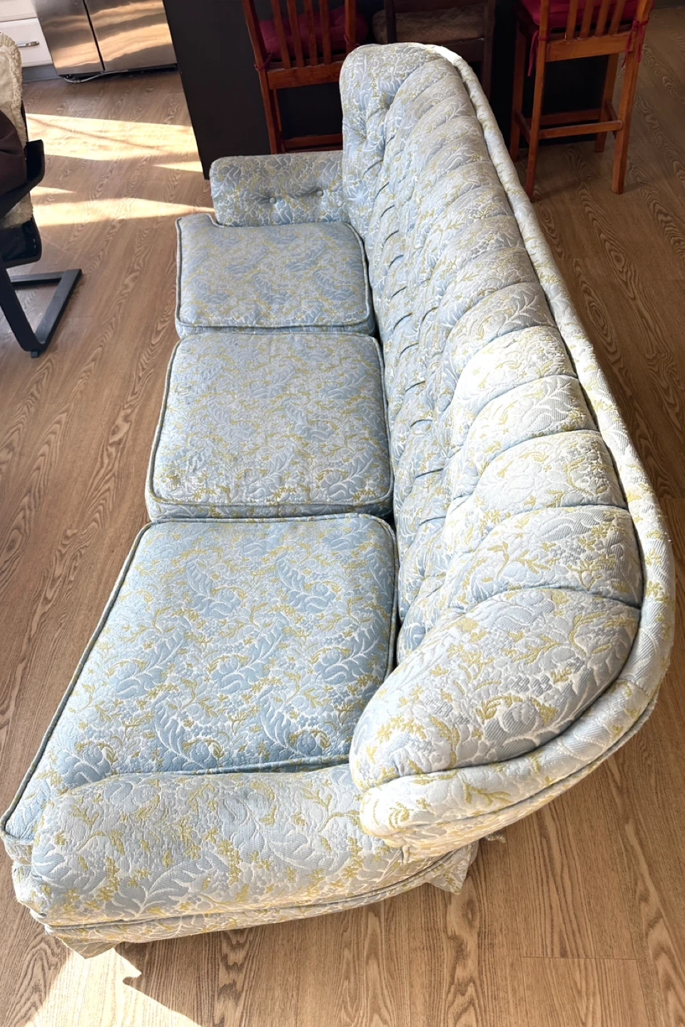 Elegant Vintage Tufted Blue & GoldSofa (CAN DELIVER)