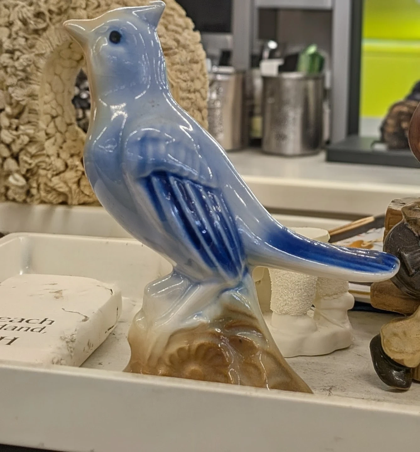 Blue Ceramic Bird Figurine