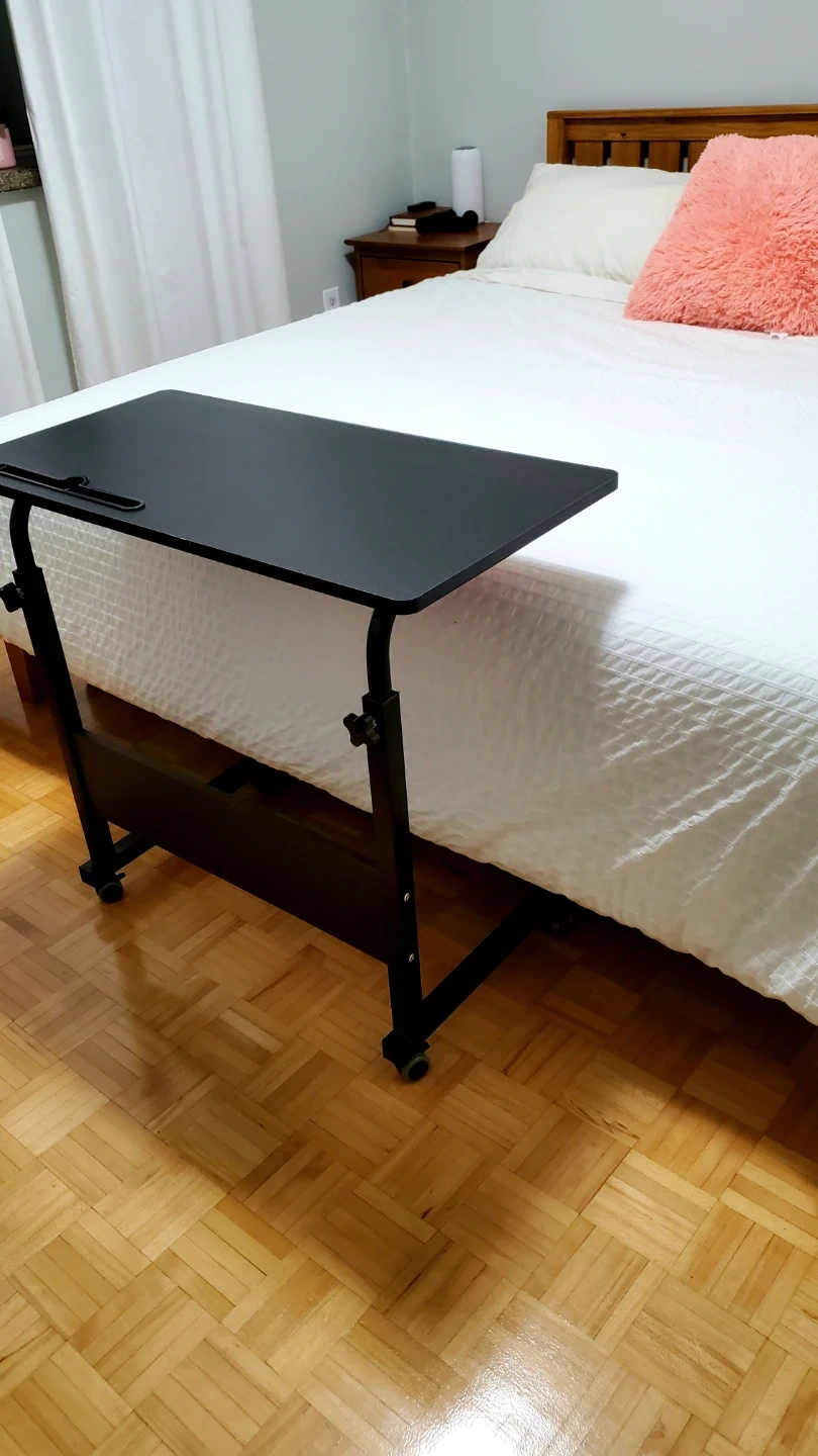 This portable desk is new and comes in a box, but assembling shouldn't take much effort. The height is adjustable, the wheels are lockable. Please don't ask for lower price (orig is $138 inc. tax), so save $$.