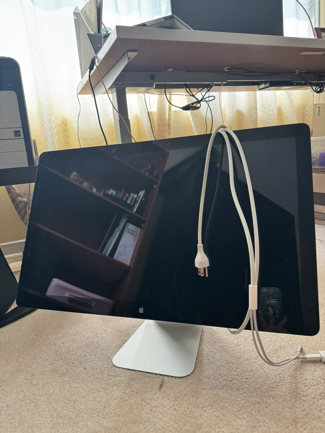 This is an Apple iMac desktop computer. It's a large display, perfect for home or office use. Includes the power cable.