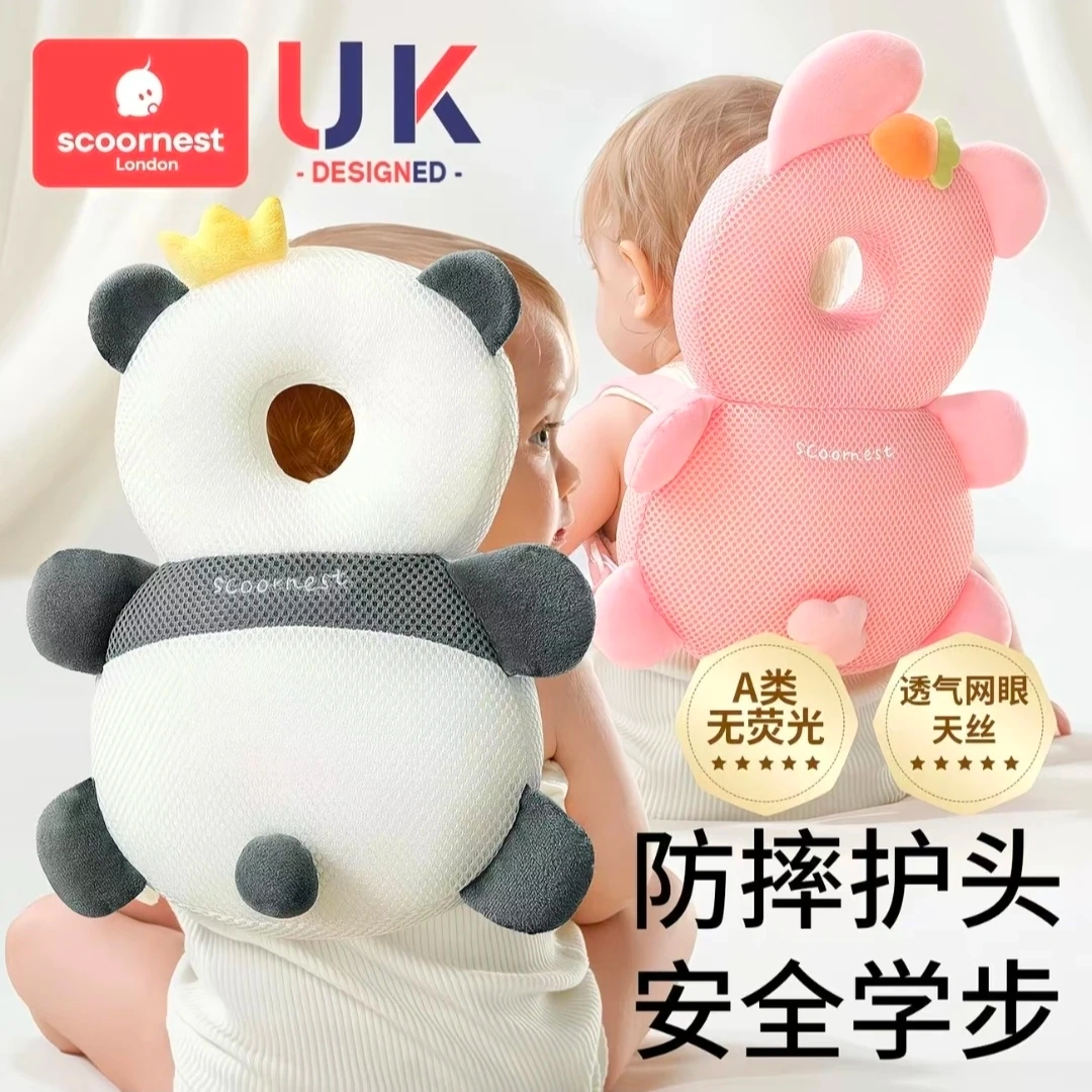 This adorable panda head protection pillow is designed to help prevent falls while your baby learns to walk. It's made with a breathable mesh material and features adjustable straps for a secure fit. Great for giving parents peace of mind!