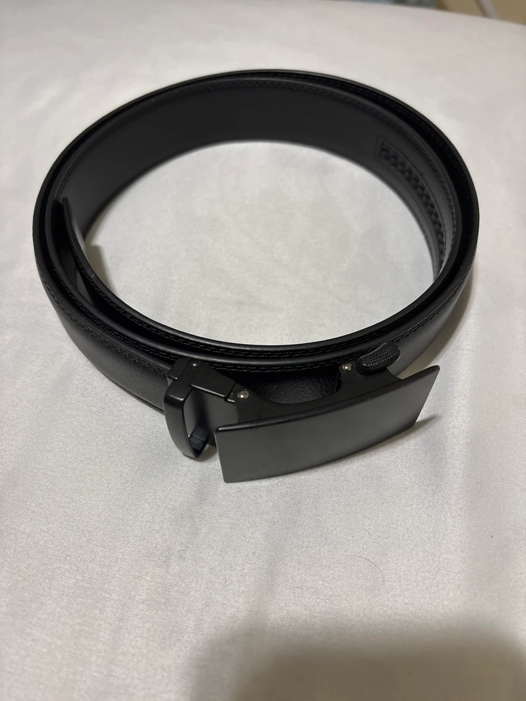 Black leather Shoes size 9.5 and Black leather belt w/ automatic buckle size 36w