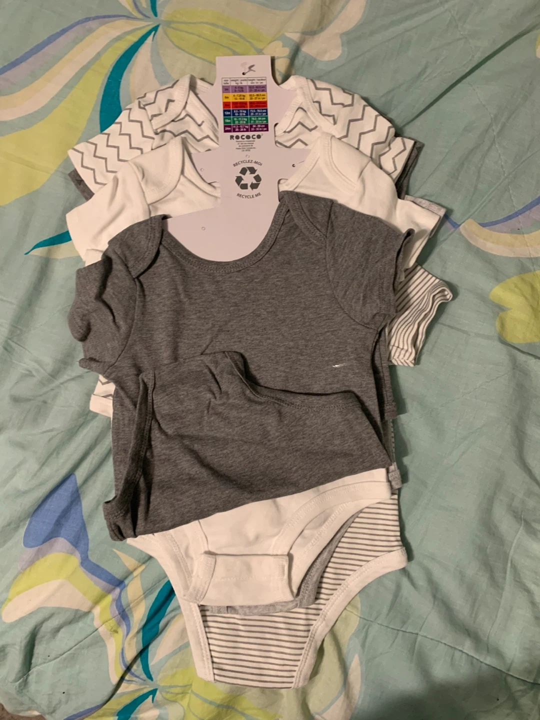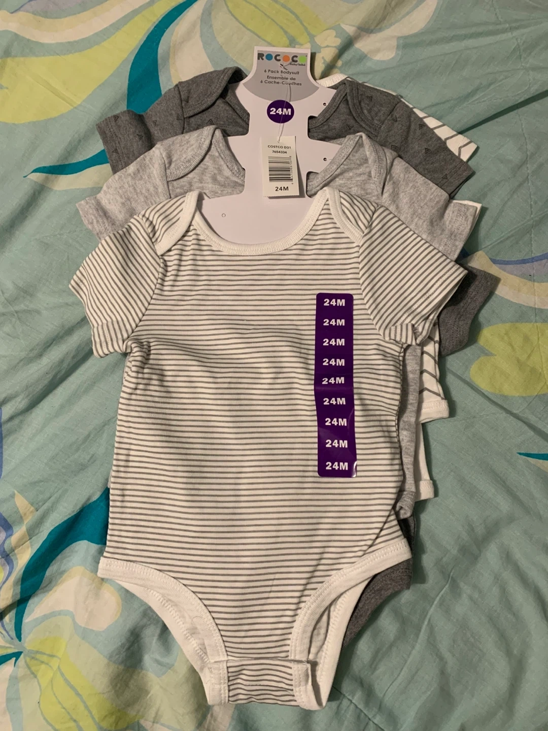 These are short-sleeve baby bodysuits in a 6-pack.