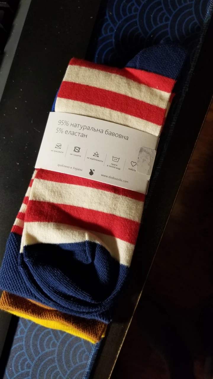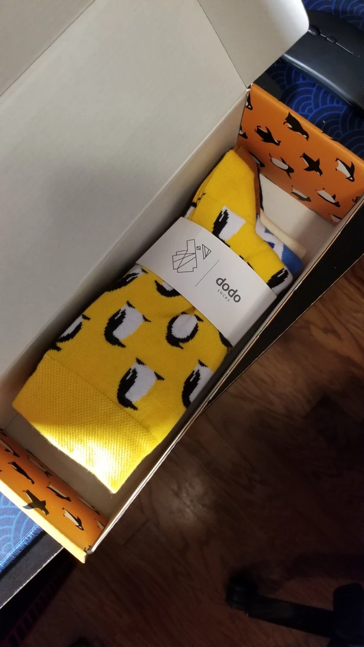 Beautiful custom socks, 3 pairs, 95% natural cotton, 5% elastane. Cute little penguins and very bright colours! Great gift idea for your lived ones, cute box too!