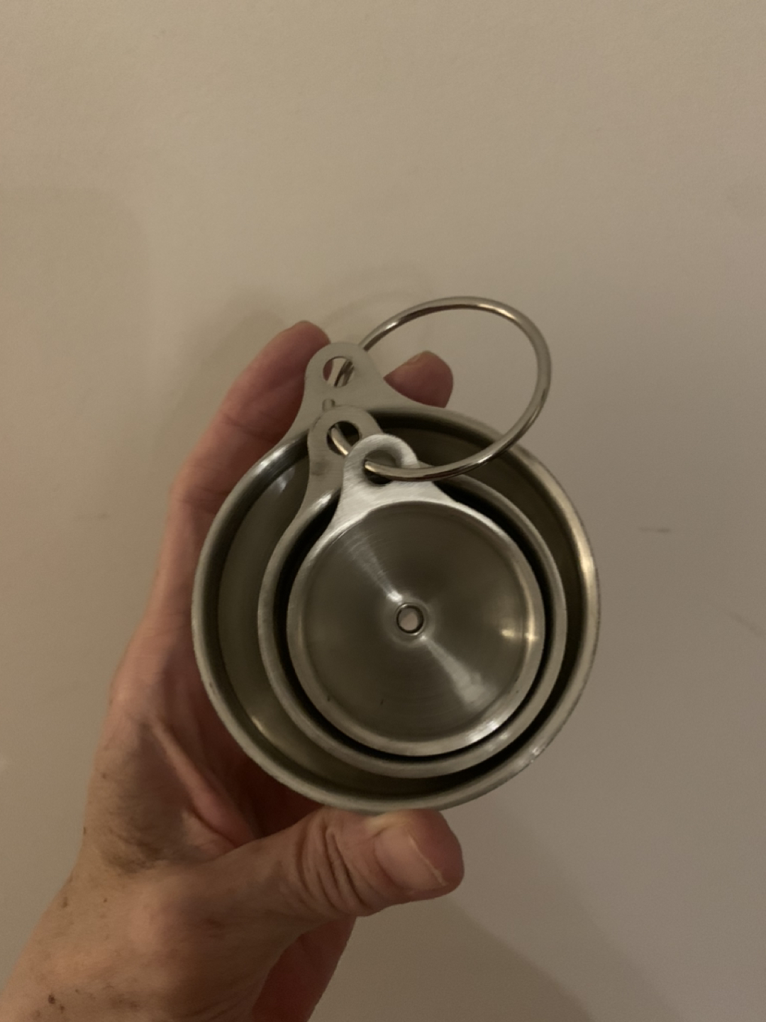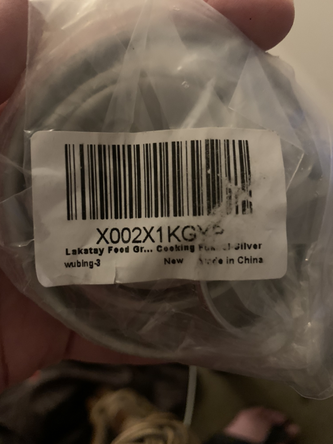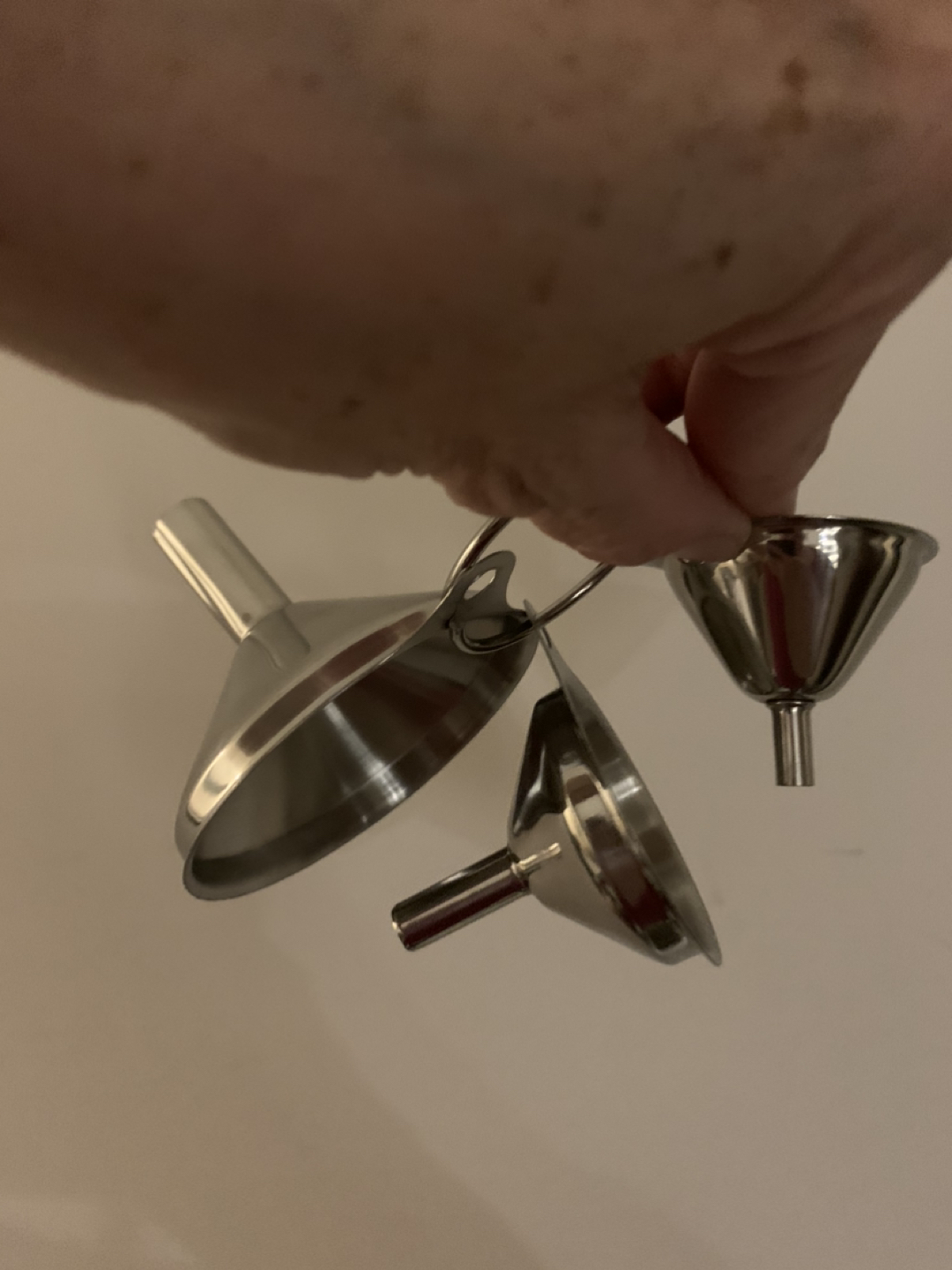 832NEW opened only to photograph. Set of 3 food grade metal culinary funnels of various sizes with handy ring for hanging/keeping them together. Pick up in Roncesvalles. No holds please. Same Day/Next day pick up preferred.