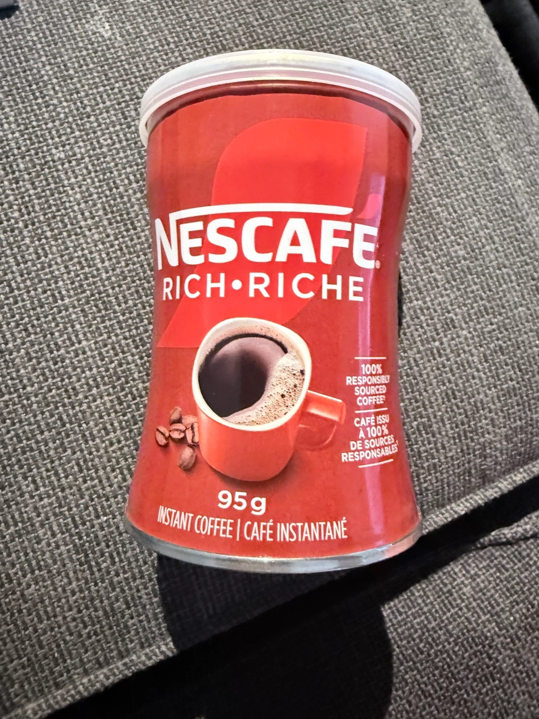 Nescafé Rich Riché instant coffee. 95g tin. BB/MA 2026. Contains 100% responsibly sourced coffee.