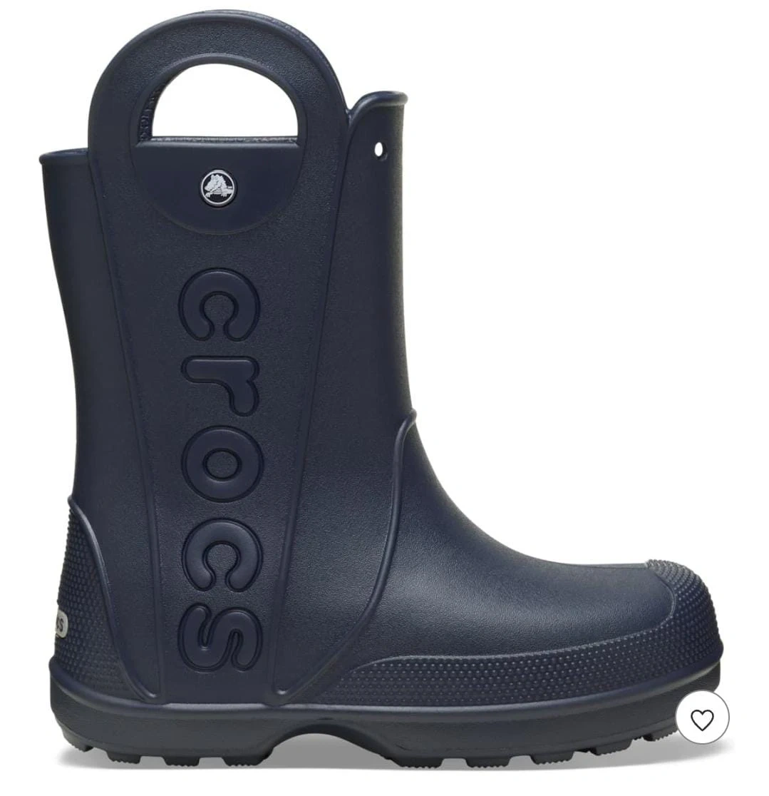 Keep your little one dry and stylish with these Crocs Handle It Rain Boots! These navy blue rain boots are perfect for splashing in puddles and staying comfortable on rainy days. They feature the classic Crocs comfort and a handy handle for easy on and off