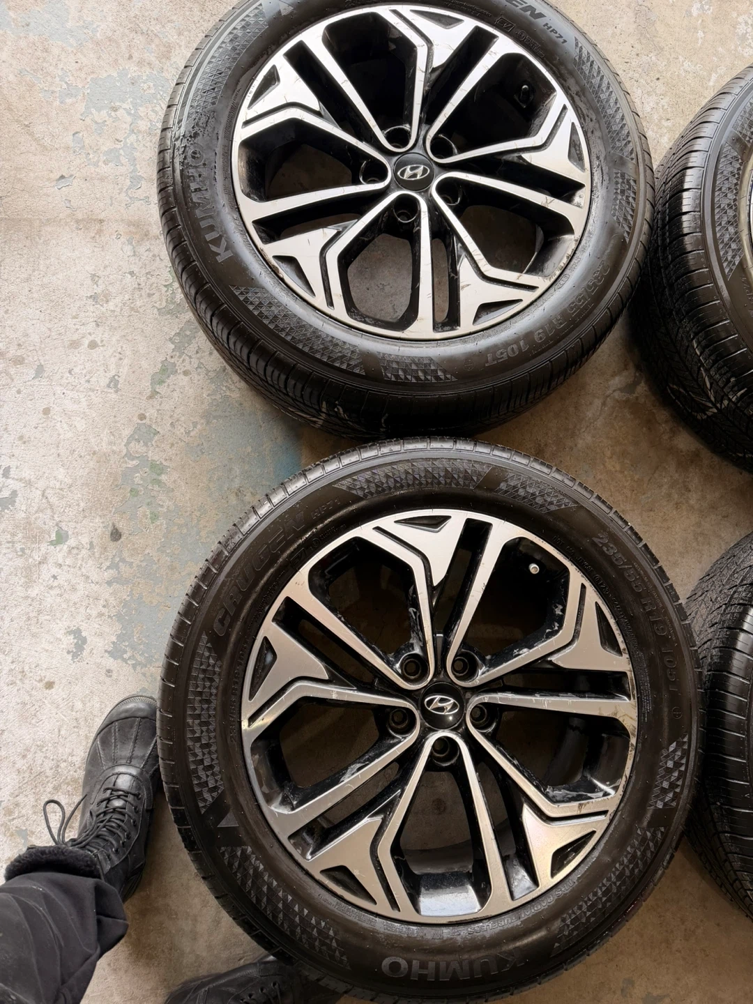 Set of 4 Kumho tires. Size 235/55 R19. Tread depth measures 6.80 mm. They're in good condition!