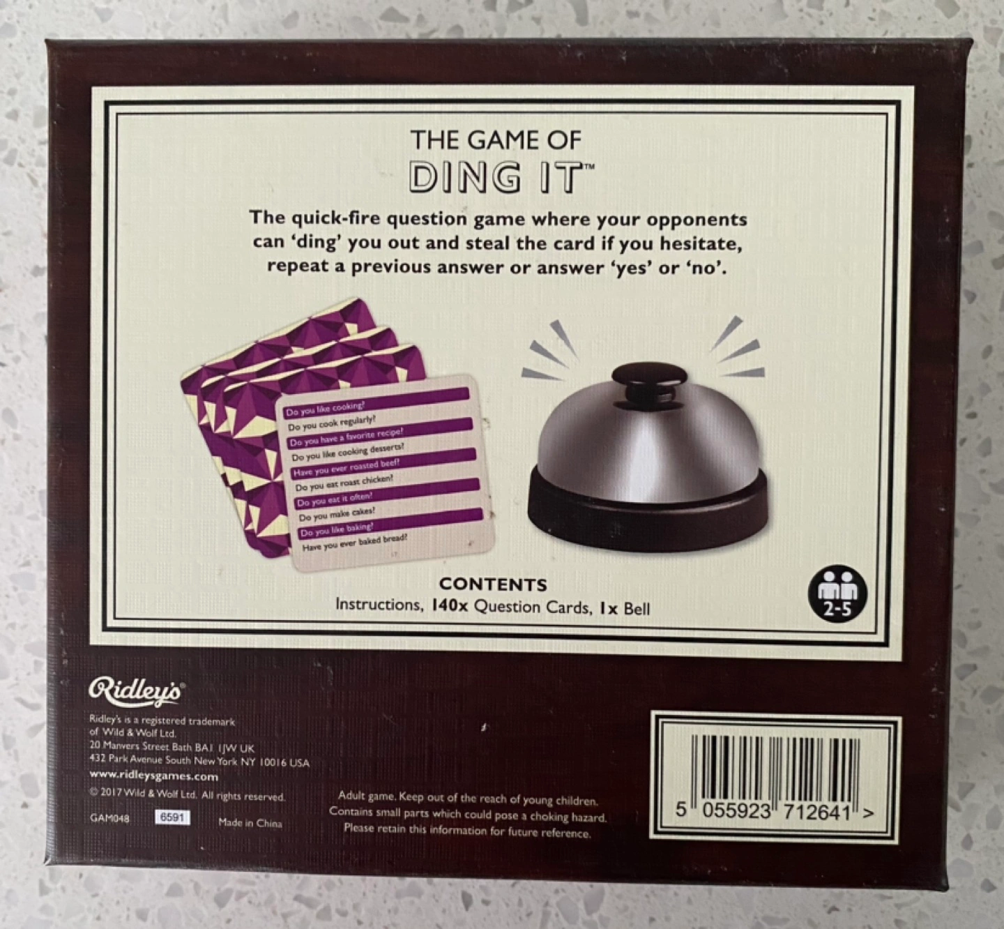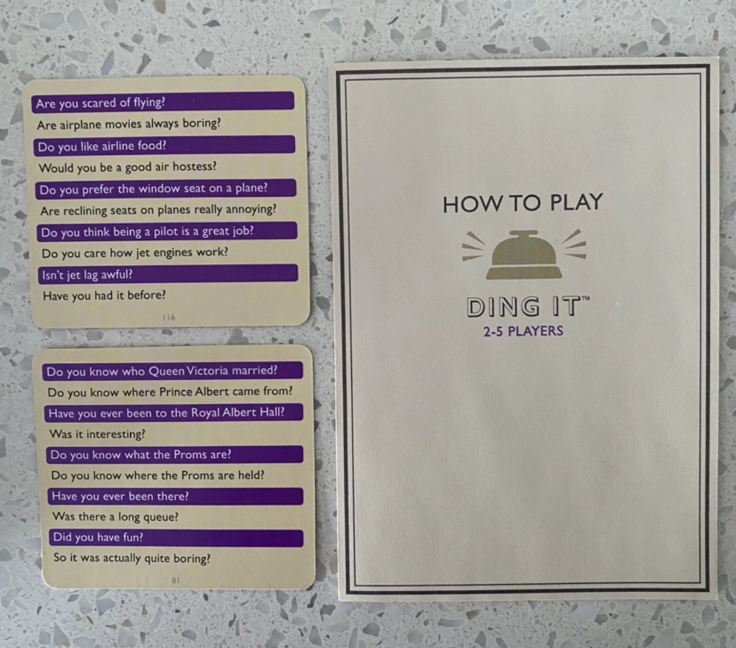 Players are contestants that answer ten rapid fire yes or no questions without hesitation to claim (win) the card. The trick is that contestants are not allowed to simply say "yes" or "no" nor repeat any of their previous answers from the round. When answering the question, a player needs to think of an answer that goes beyond a simple yes or no. For example, a contestant may be asked "Do you like ice hockey?" An appropriate response could be "More than baseball". When rules are broken, other players ding the bell and steal the card. The contestant with the most cards at the end of the game is the winner.