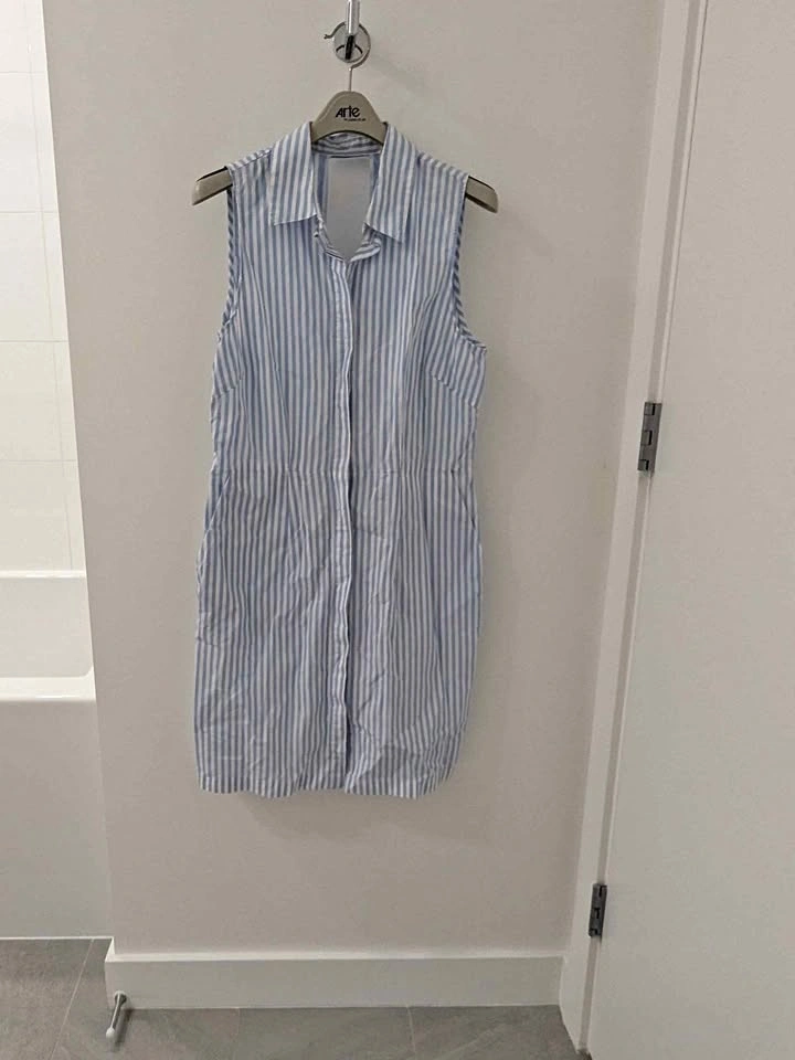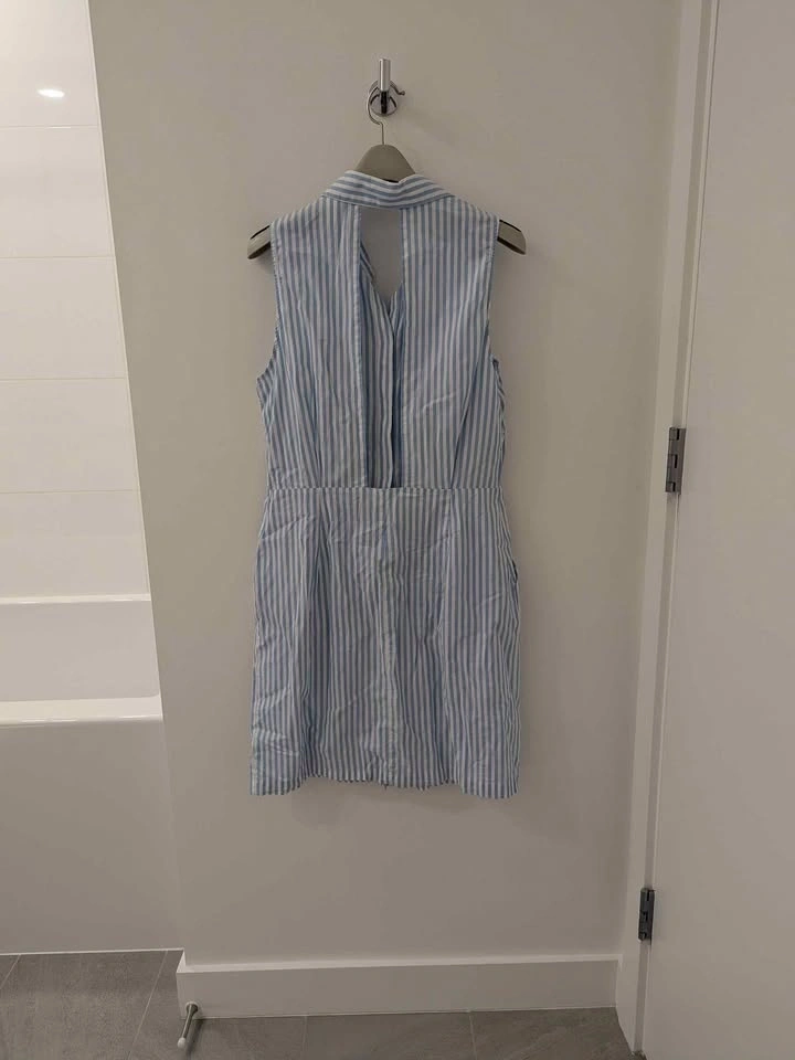 Sleeveless button up backless dress. Pockets on both sides.