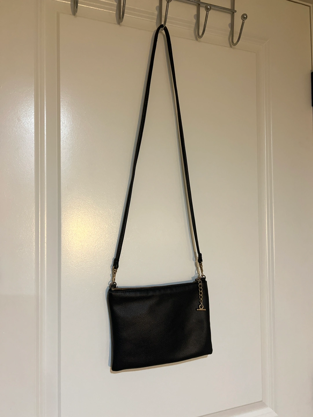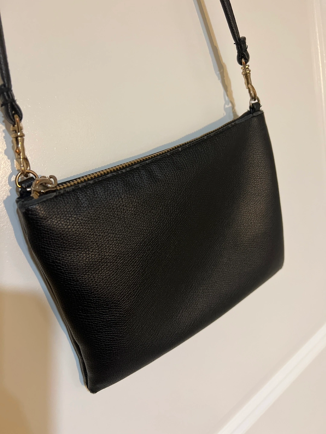 Black Crossbody Shoulder Bag Gold Zipper Detachable Clutch