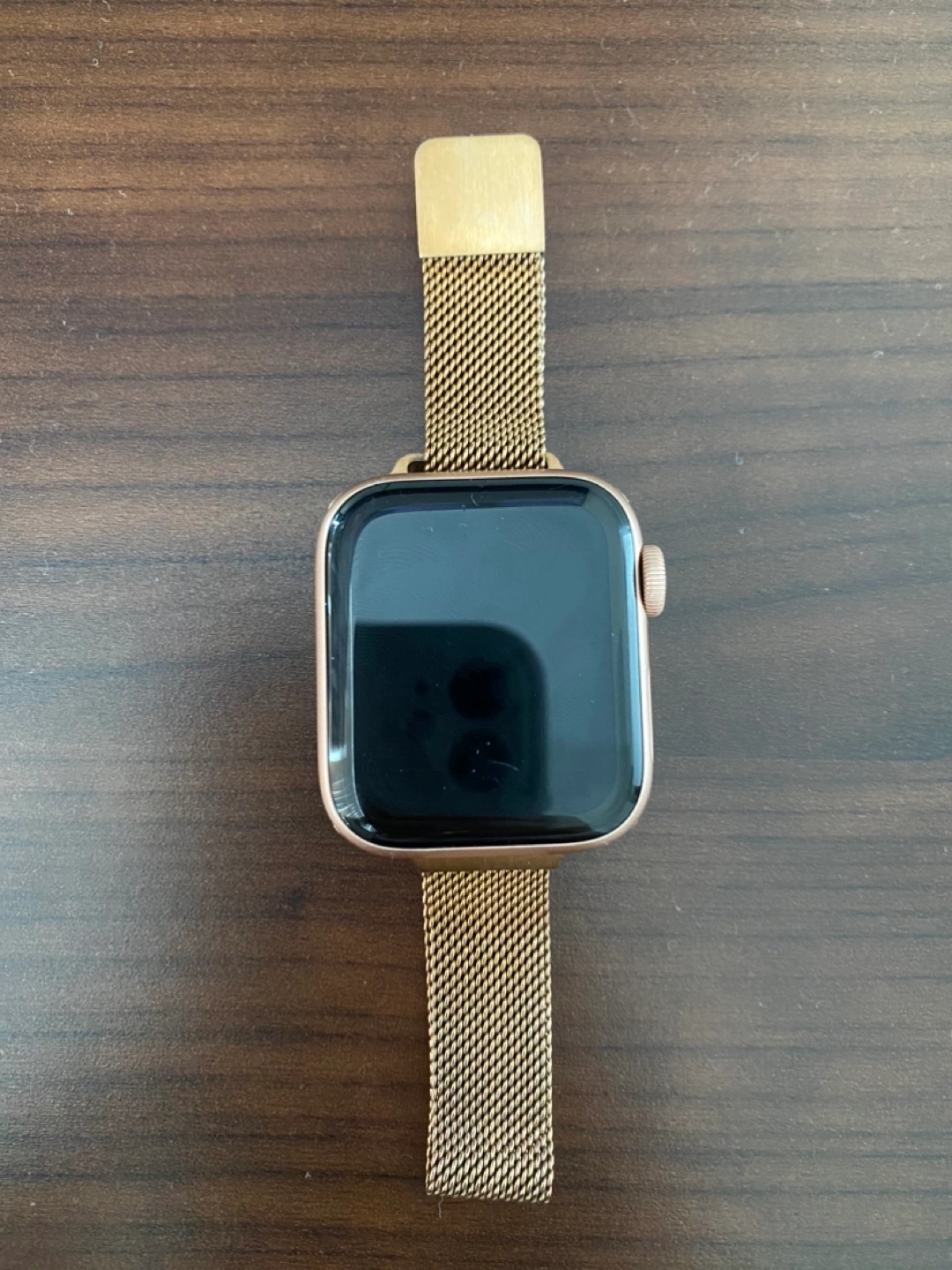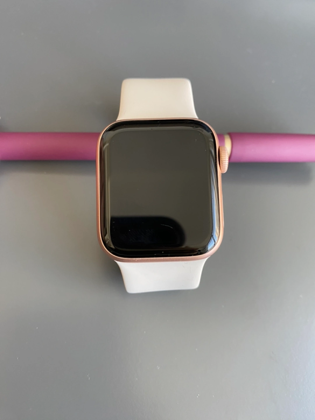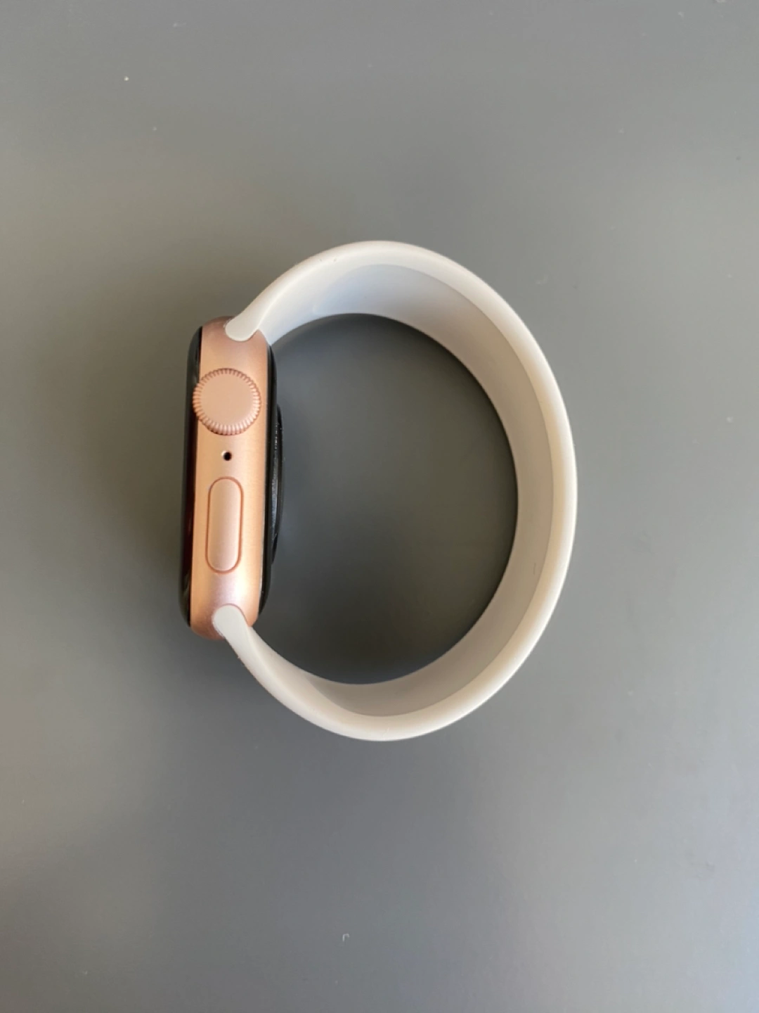 Apple Watch SE GPS 40mm in rose gold with starlight solo loop (size 4). Also comes with a brown leather strap and rose gold chain strap (both of these straps purchased off Amazon). Comes with original packaging for both the watch and starlight single loop strap (both purchased from Apple) and charging wire.