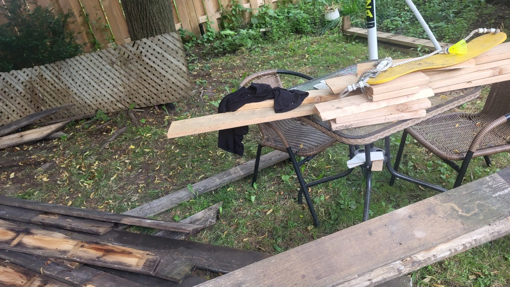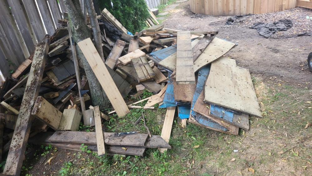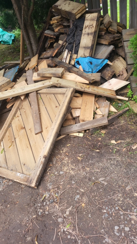 Client Removed backyard patio and oh and a whole time of hardwood for burning