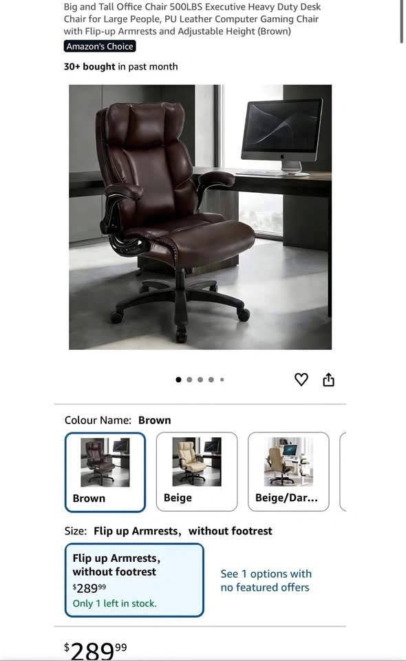 Brand new big and tall executive office chair with 500 lb weight capacity. Heavy-duty design with PU leather, adjustable height, and flip-up armrests. Comfortable and durable for office, gaming, or home use.