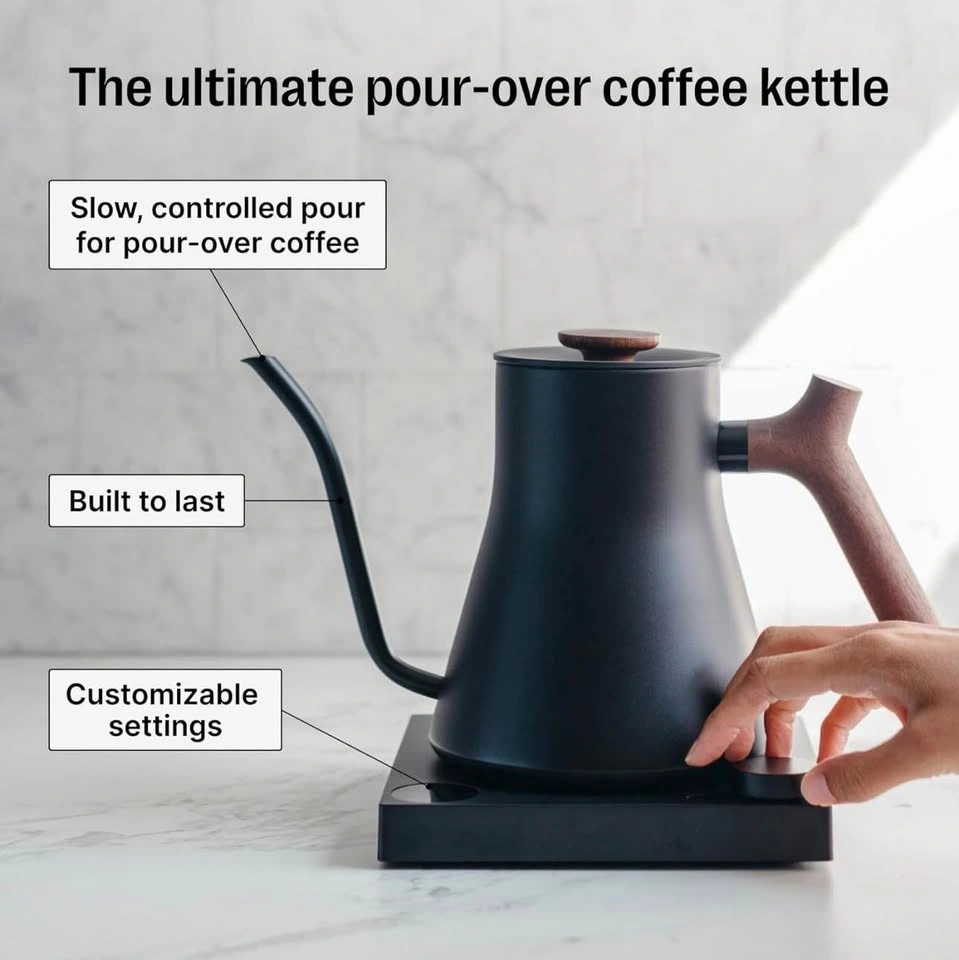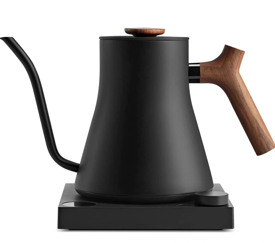 Brand new sealed Fellow Stagg EKG Pro gooseneck electric kettle. Matte black stainless steel with walnut wood handle. Quick heating with precise temperature control. Perfect for pour-over coffee and tea.