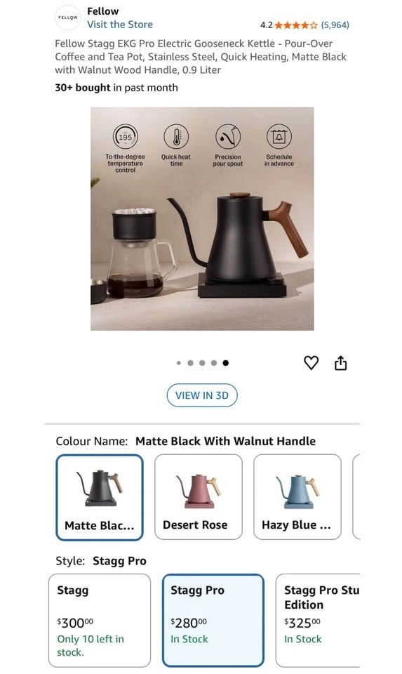 Fellow Stagg EKG Pro Gooseneck Electric Kettle - Matte Black & W