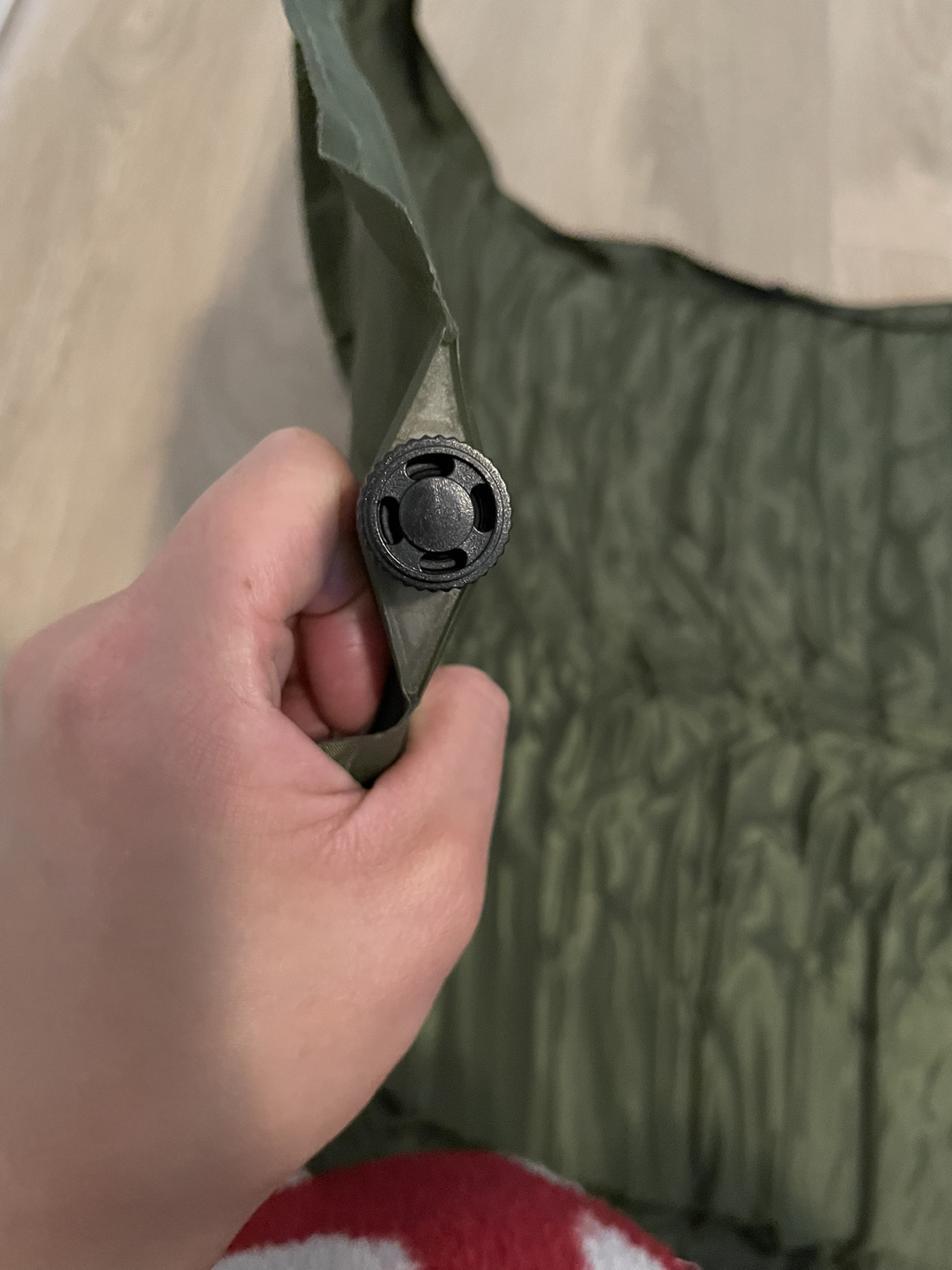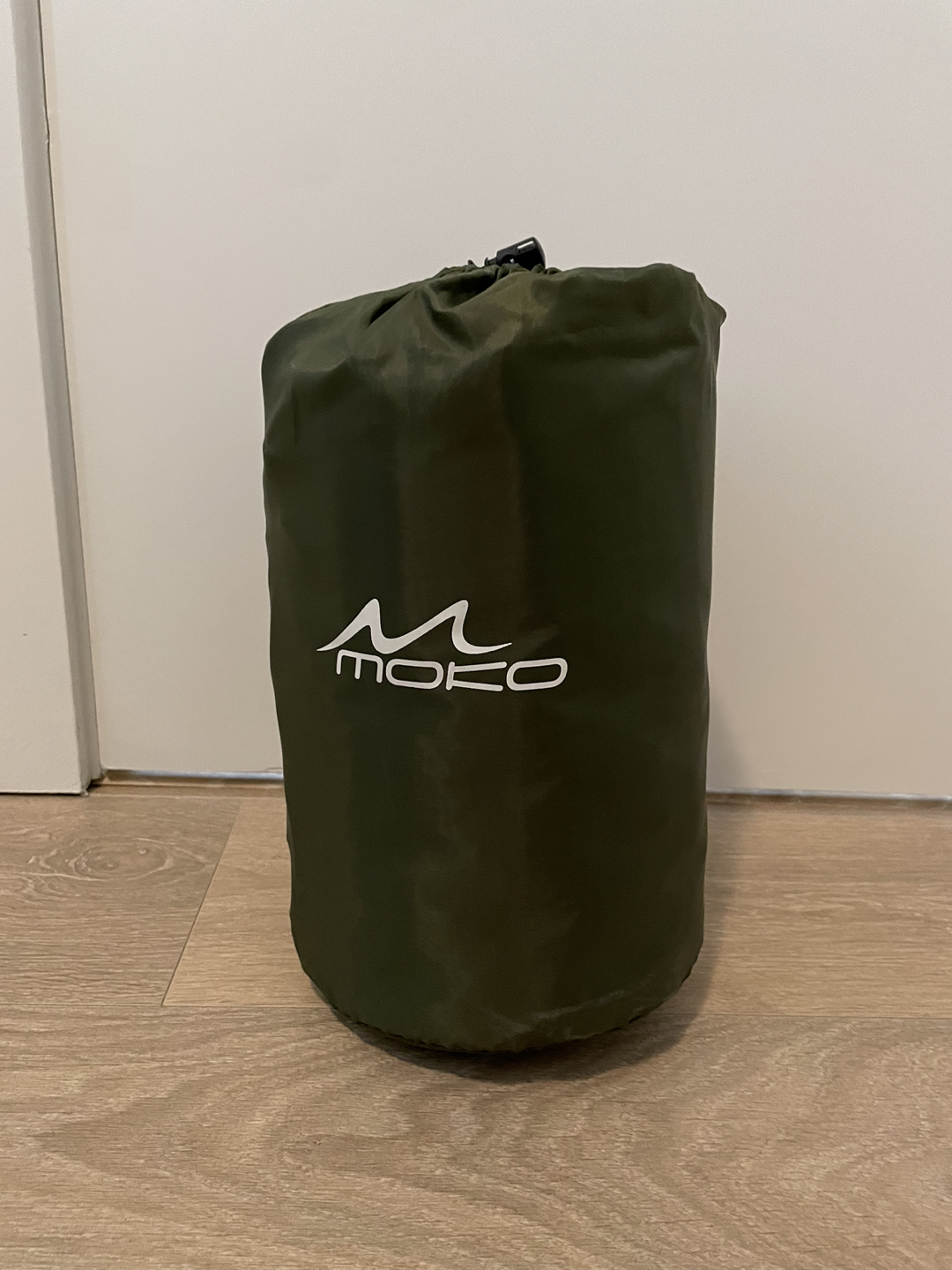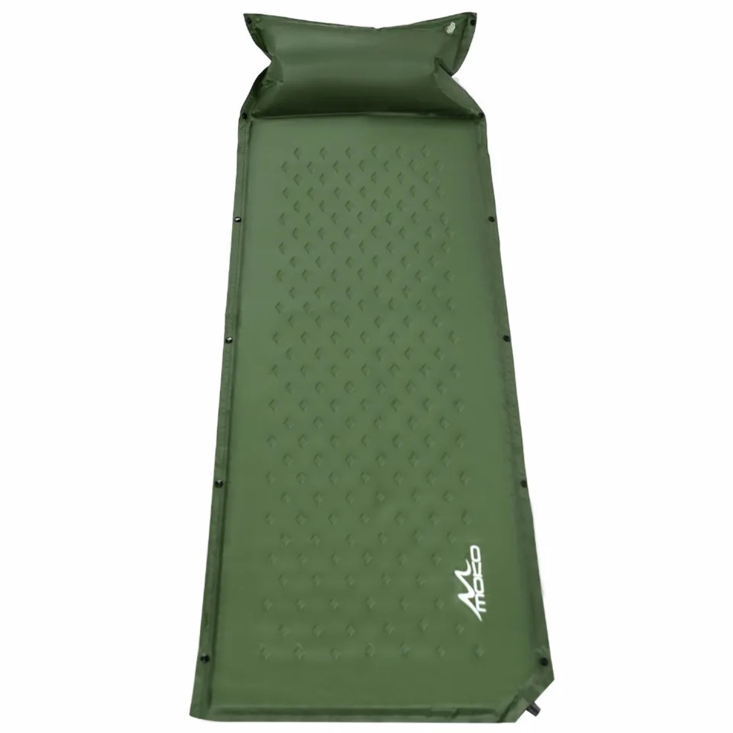 419Used this one time only Self inflating camping mat, also has a pillow attached to it that you manually inflate Single person sleeping mat Dimensions: roughly 21 by 55 Inches