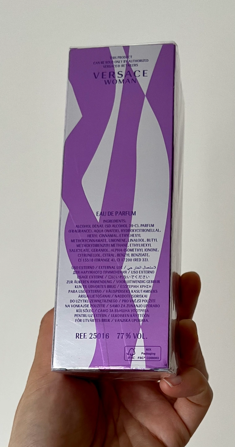 107- launched by the design house of Versace in the year 2000 - nose behind fragrance is Christine Nagel - top notes are Jasmine, wild rose, frangipani leaves, and bergamot - middle notes are Lotus, plum, raspberry, and Lebanese blue cedar - base notes are Musk, grey amber, and Inoki wood - fragrance classified as Floral