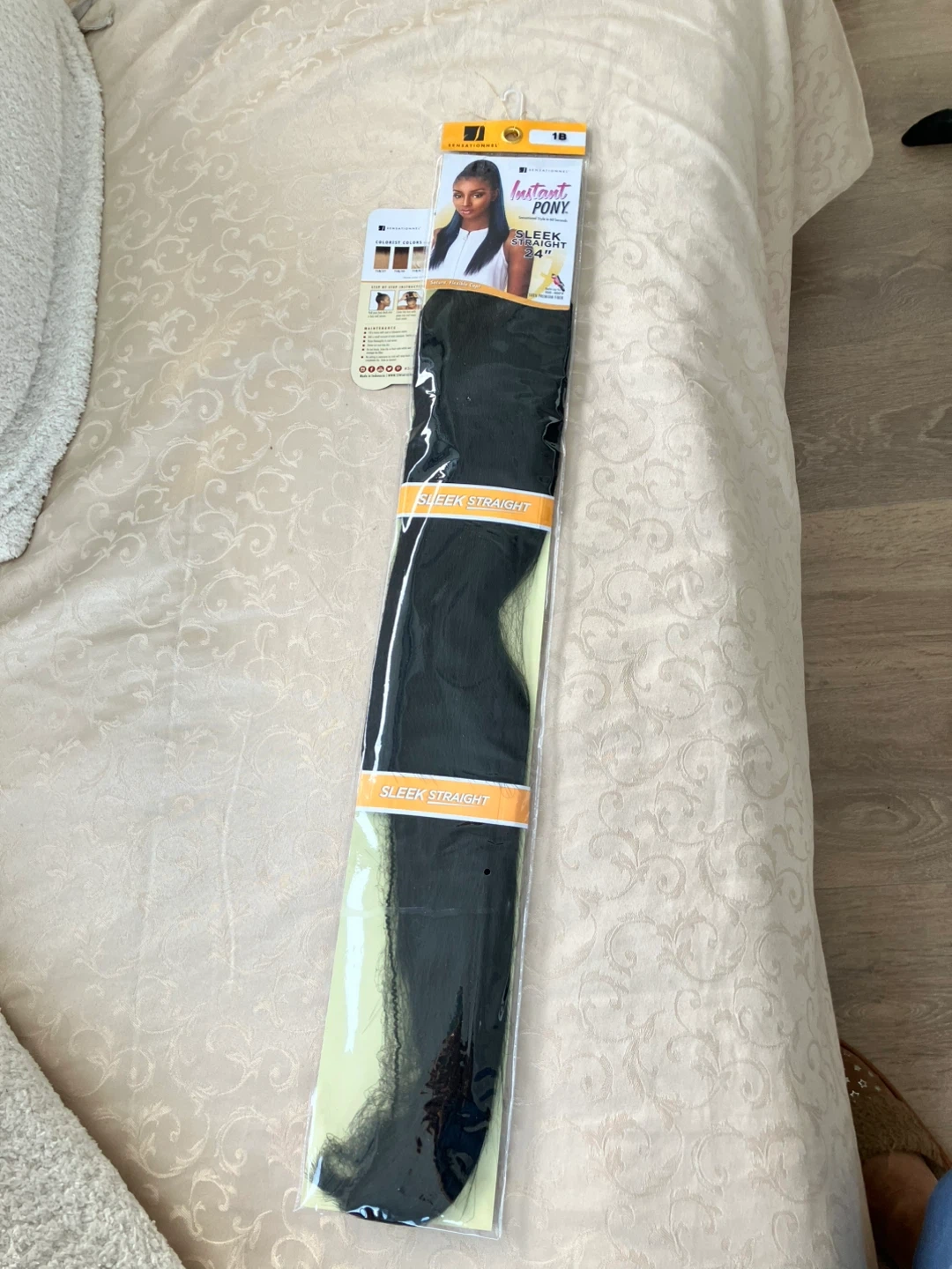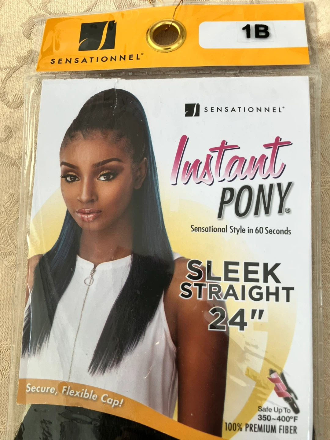 Sensationnel Instant Pony Sleek Straight hair extension. This is 24 inches long and made with 100% premium fiber. It's safe up to 350-400 degrees Fahrenheit. Perfect for a quick and easy style change!