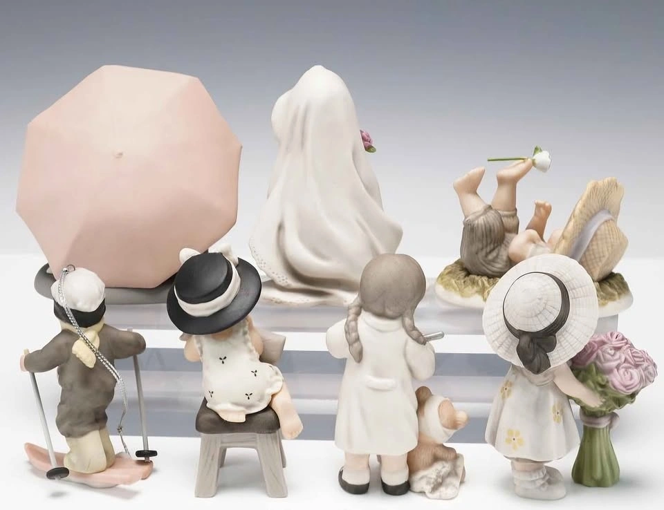 Endearing porcelain children figures from the "Pretty as a Picture" collection inspired by Kim Anderson's photography, produced by Enesco. Each figurine is $35.