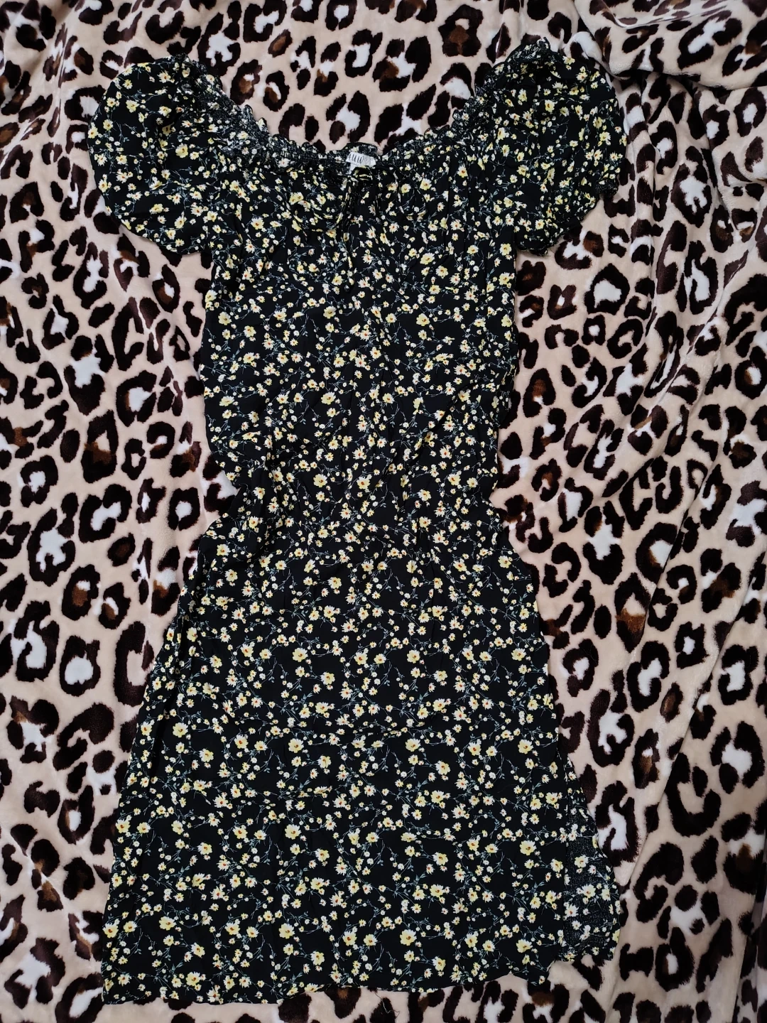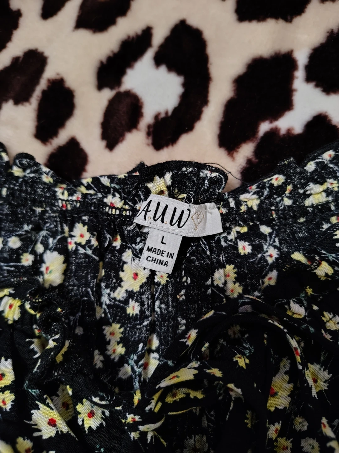 This is an AUW women's floral print dress. It's a size large with a V-neck and short puff sleeves. It's perfect for a casual outing or a summer day! Since spring is coming up sooner than later :)