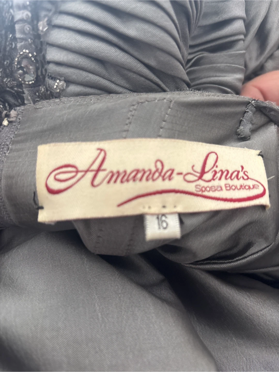 Amanda-Lina's Sposa Boutique Silver Beaded Formal Dress Size 16