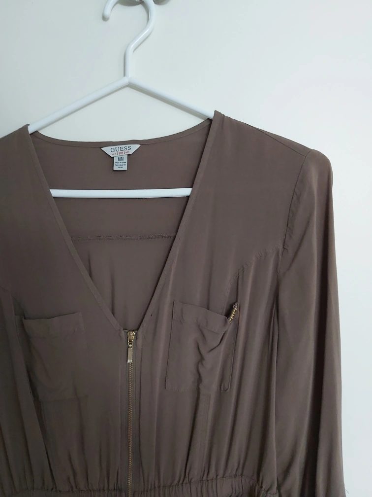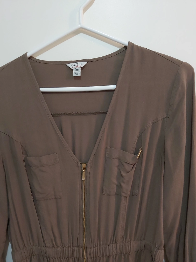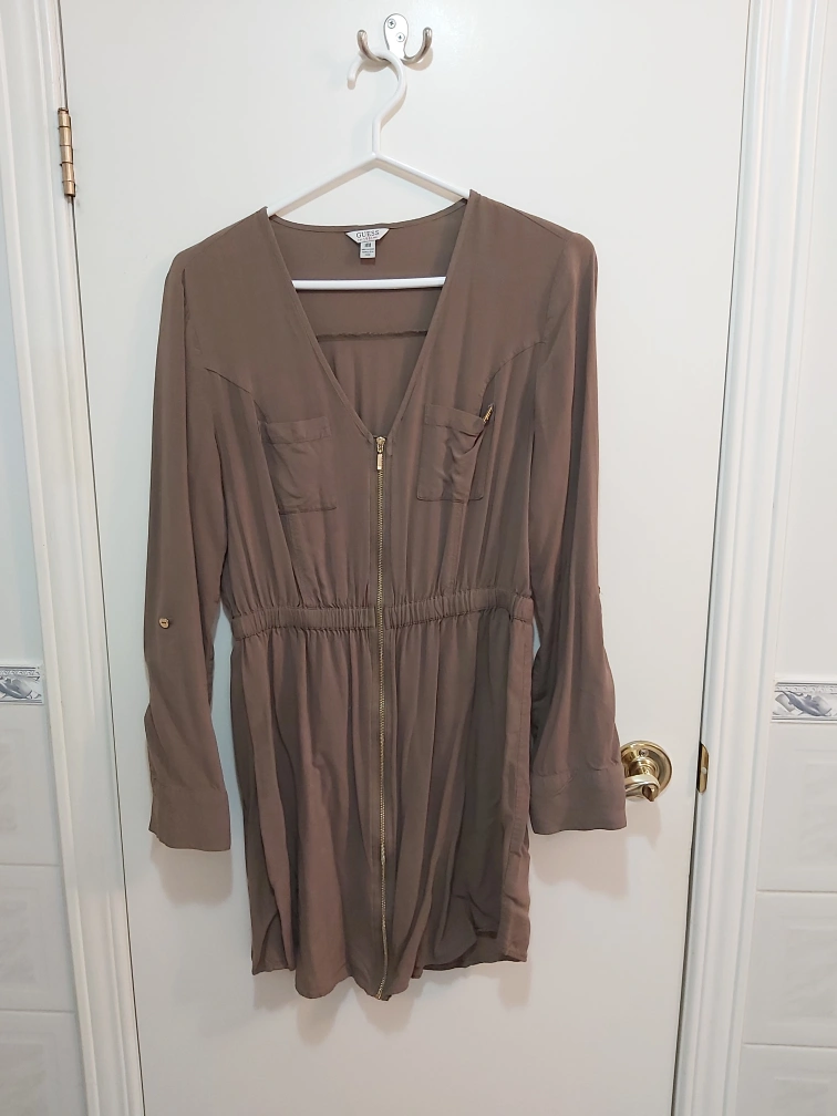 Colour: Khaki or olive green with gold coloured zippers and branded pieces