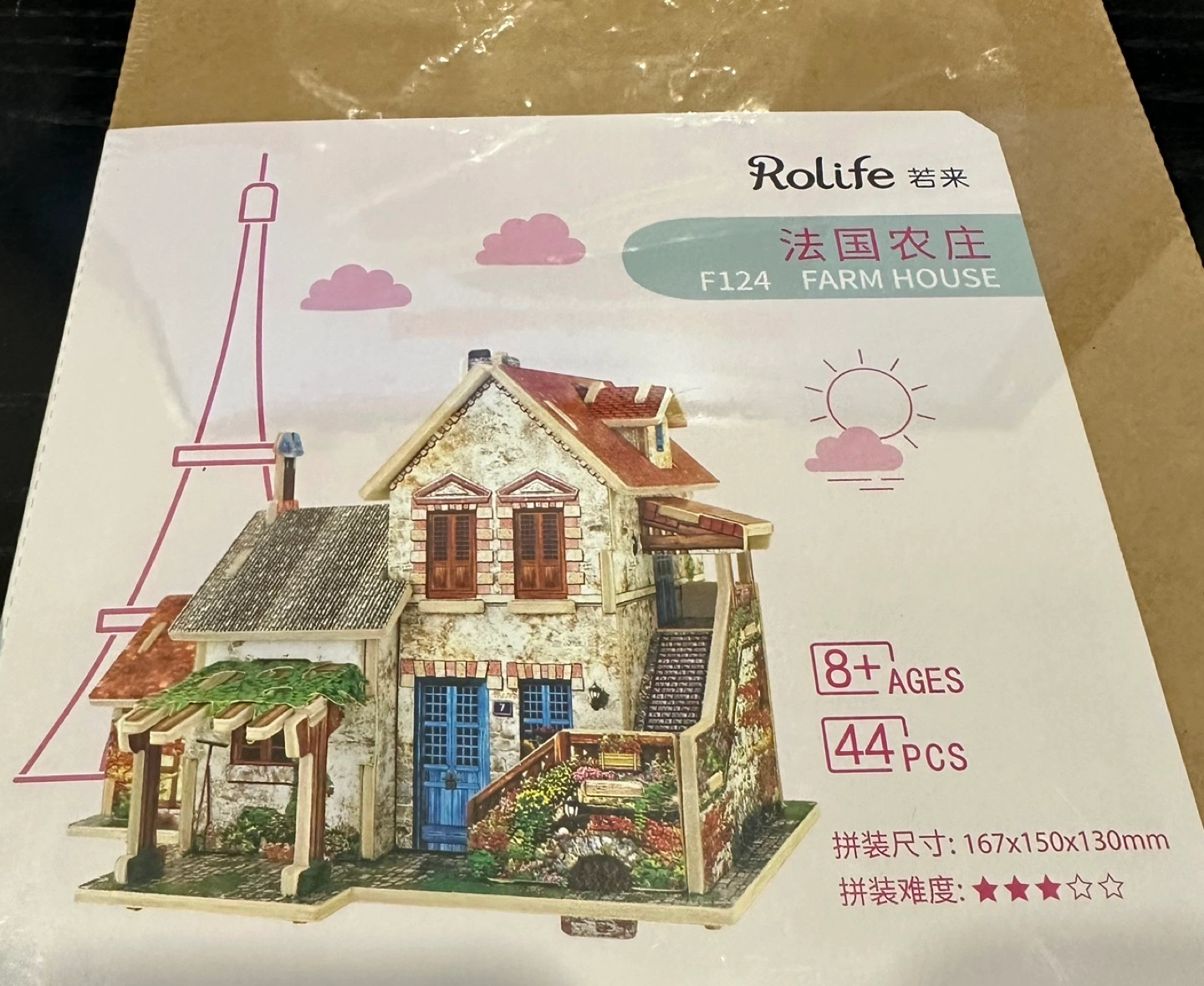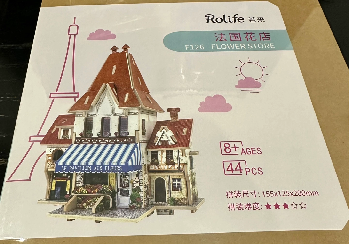 3D Wooden Puzzles: 4 Different Modes with completed size: French Small Hotel, 165x129x186mm French Flower Store, 155x125x200mm French Farm House, 167x150x130mm English Bar, 158x132x145mm $14each; 2 for $26 Great for ages: 7 to 8